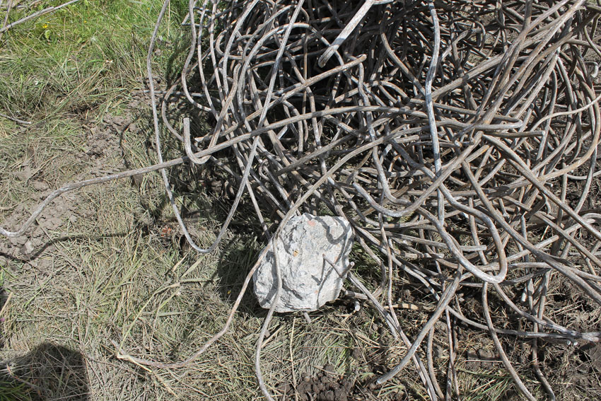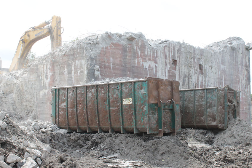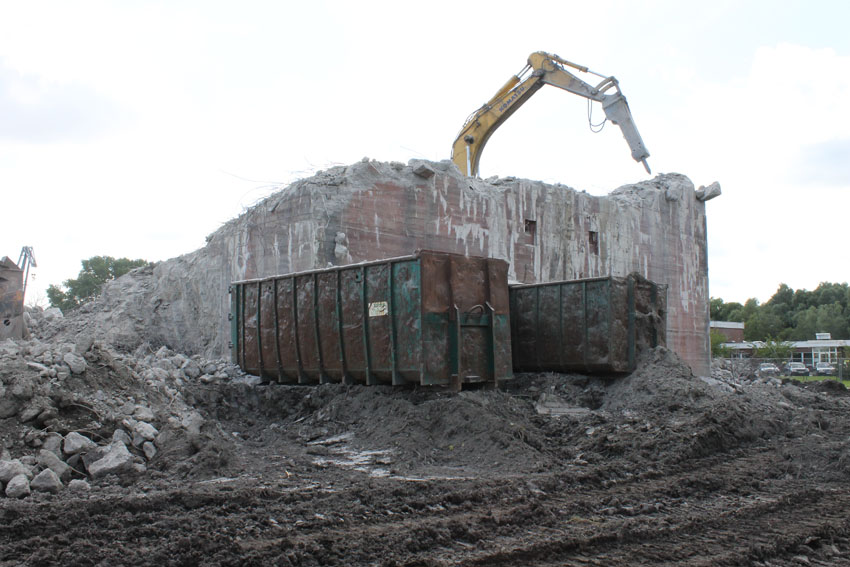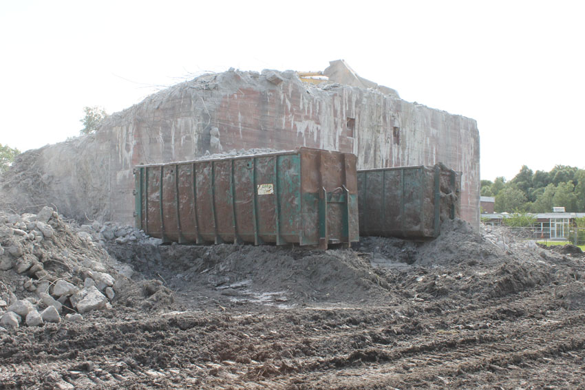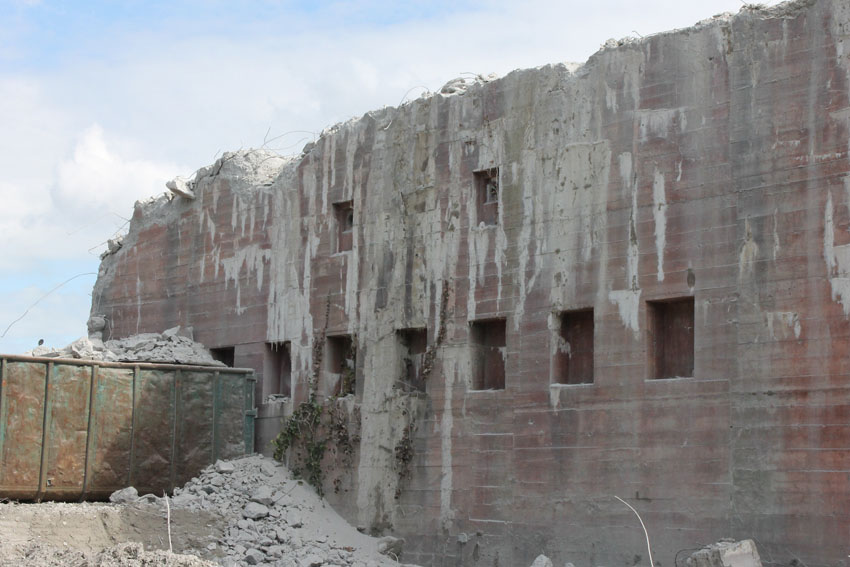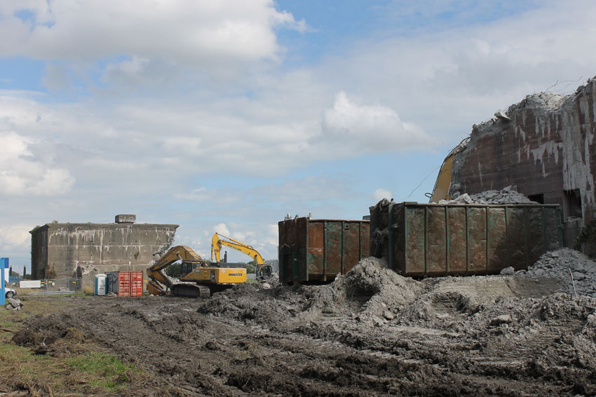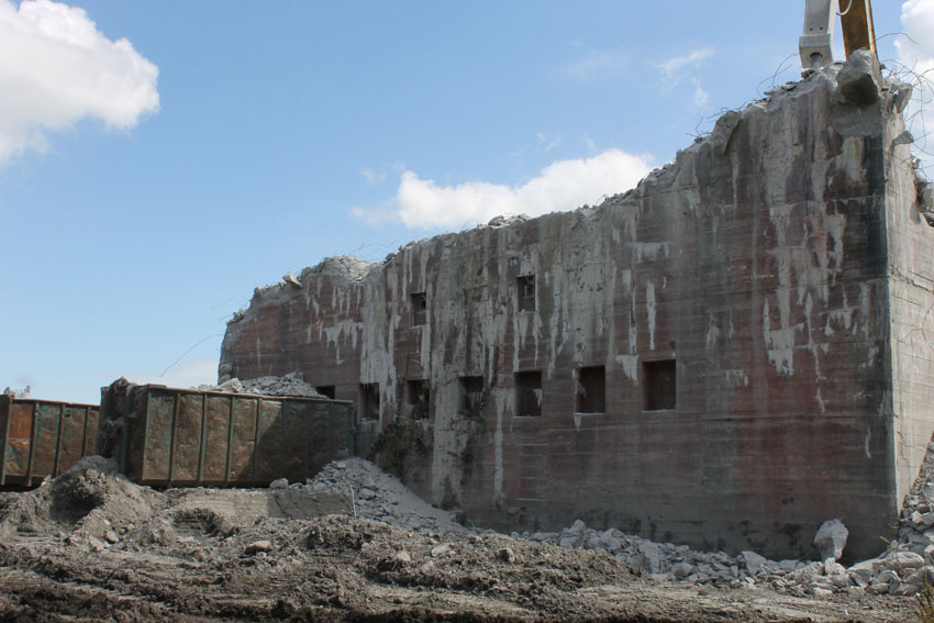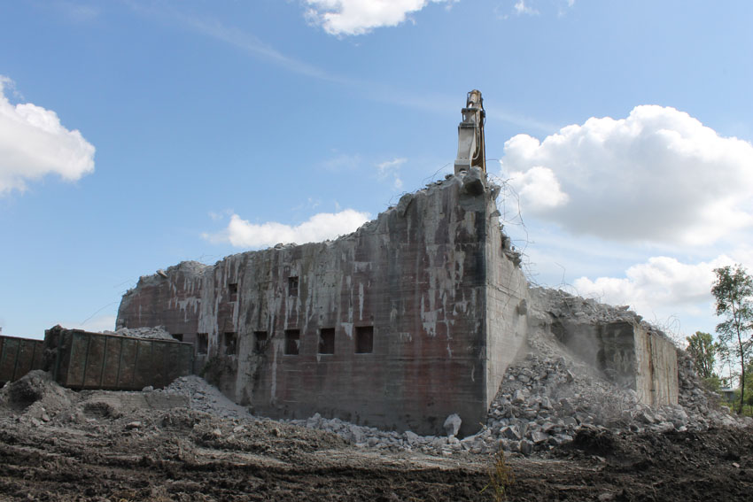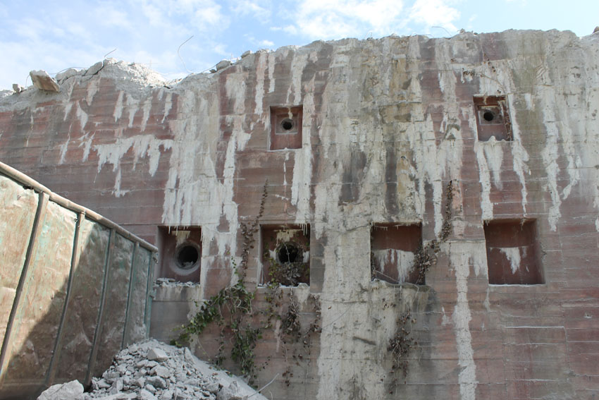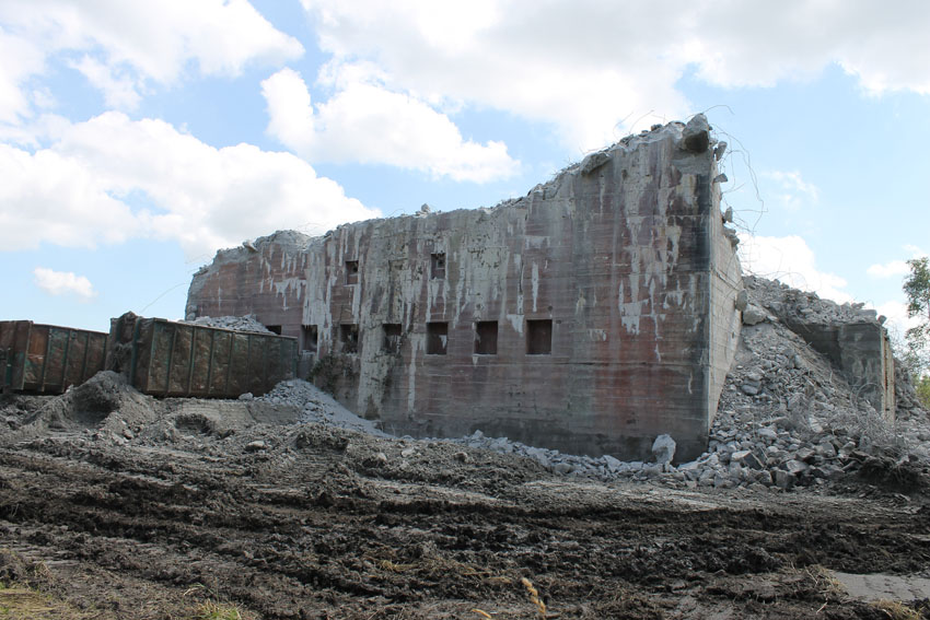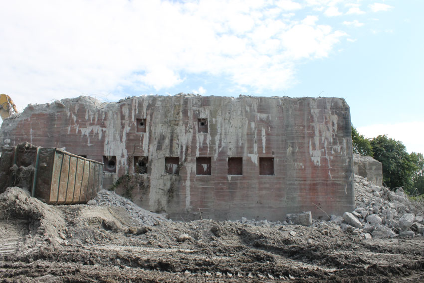 nur noch das verfüllte Erdgeschoss, die Nordwand bis OG1 und 2, Splitterschutzvorbau
