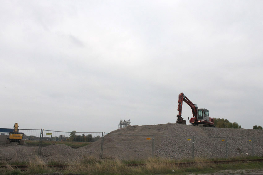 An der Hannoverschen Straße nichts Neues: Zwar wird südlich der ehemaligen T 750 die Straße in Richtung ROVA gebaut, auf den Bunkerstandorten ist aber noch immer Stillstand bis auf einige Verladeaktionen von Betonsplit. Die T 750-Fundamente sind weiterhin unversehrt vorhanden...