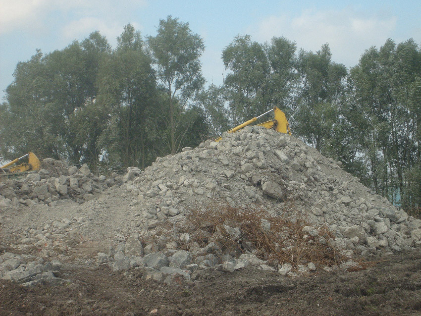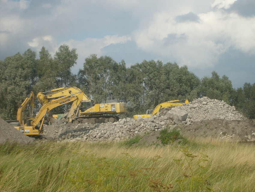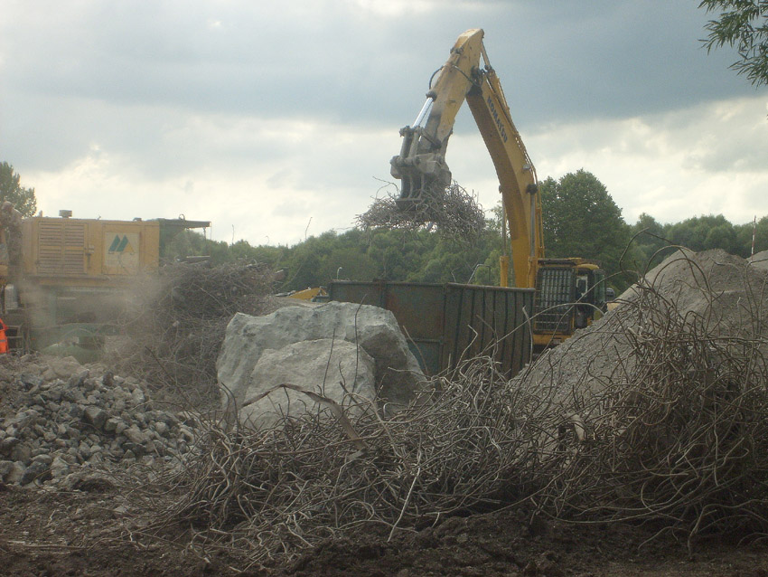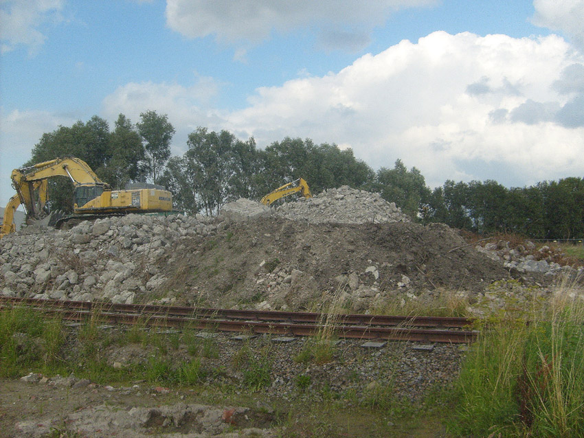 Abrisstag 43 / Abrisstag 44: Gestern und heute wurden die Betonzerkleinerungsarbeiten weiter in stetigem Tempo fortgesetzt. Es erinnert nicht mehr viel daran, dass hier bis vor kurzer Zeit zwei T 750 standen. Immer feiner werden die Schuttberge...