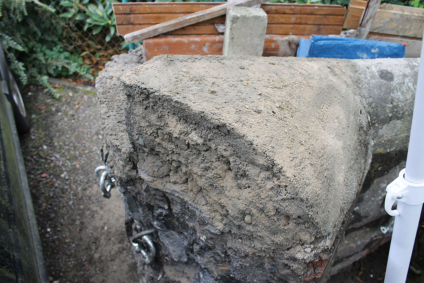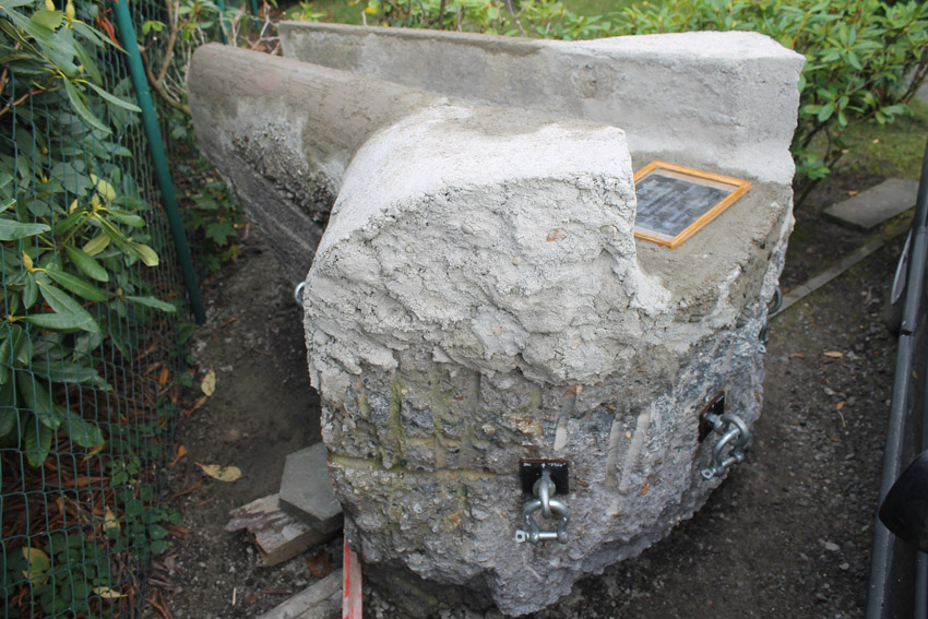 Gewicht: Circa 1,8 Tonnen (+ etwa 150 Kilogramm Neubeton / Ausbesserungsarbeiten)