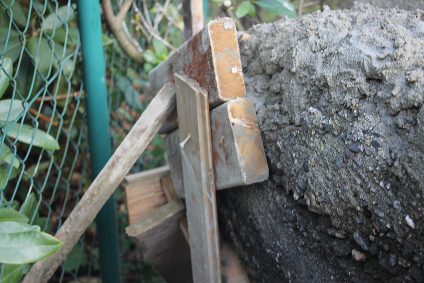 Begonnen haben nun die Vorbereitungen zur Ausbesserung der zerstörten Oberbereiche des Speiers mit der Installation der Verbindungsstifte zwischen Altbeton und zukünftigem Neubeton. Zusätzlich wird an die Gusstellen eine spezielle Verbindungsflüssigkeit aufgetragen, sodass auch bei Frost keinerlei Abplatzungen in den demnächst dann restaurierten Bereichen mehr entstehen können.