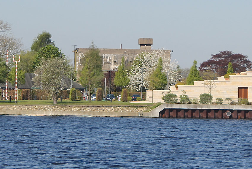 Truppenmannschaftsbunker 750 1 an der Emsstraße in Wilhelmshaven vom Großen Hafen aus gesehen - 8. Mai 2016