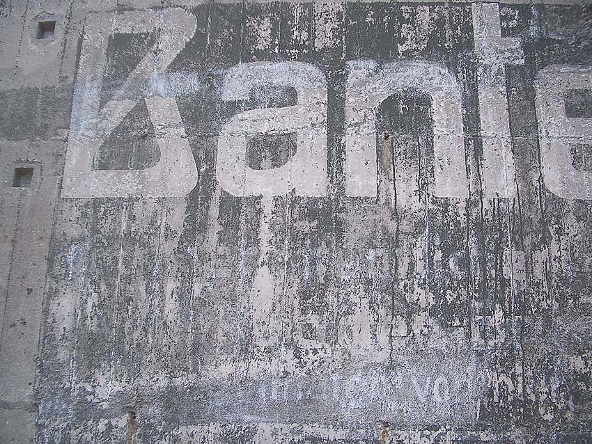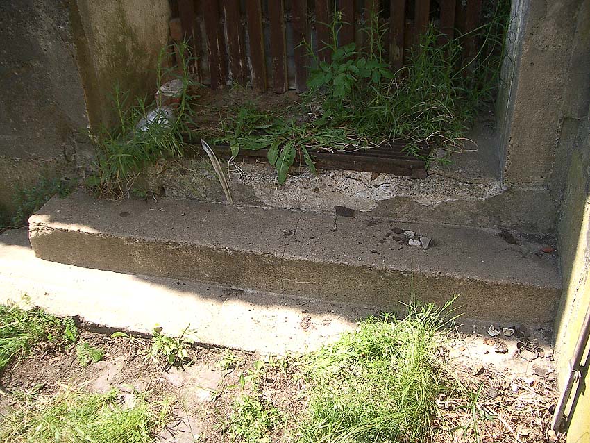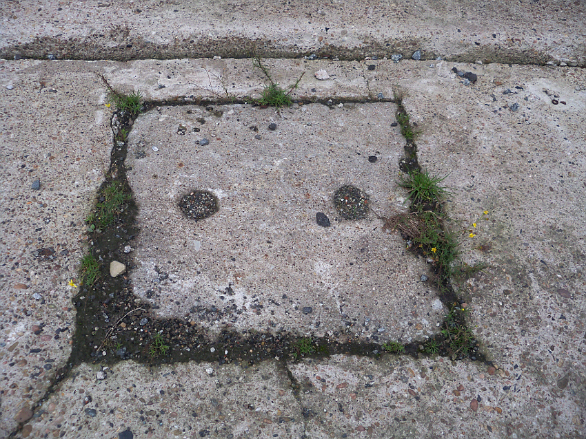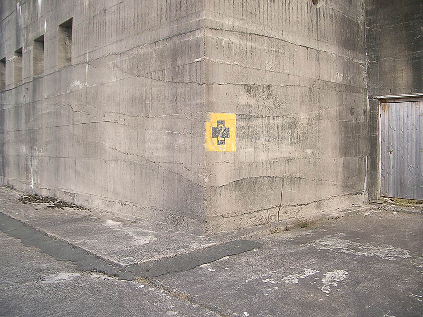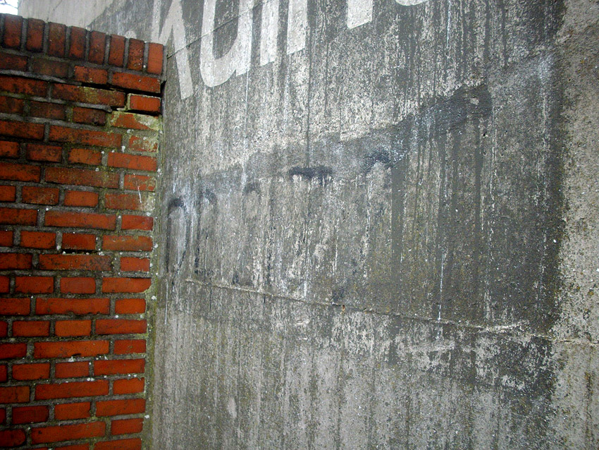 Reste eines LS-Pfeiles links neben der Inschrift. Hier schien auch ein Hinweisschild oder ähnliches installiert gewesen zu sein.