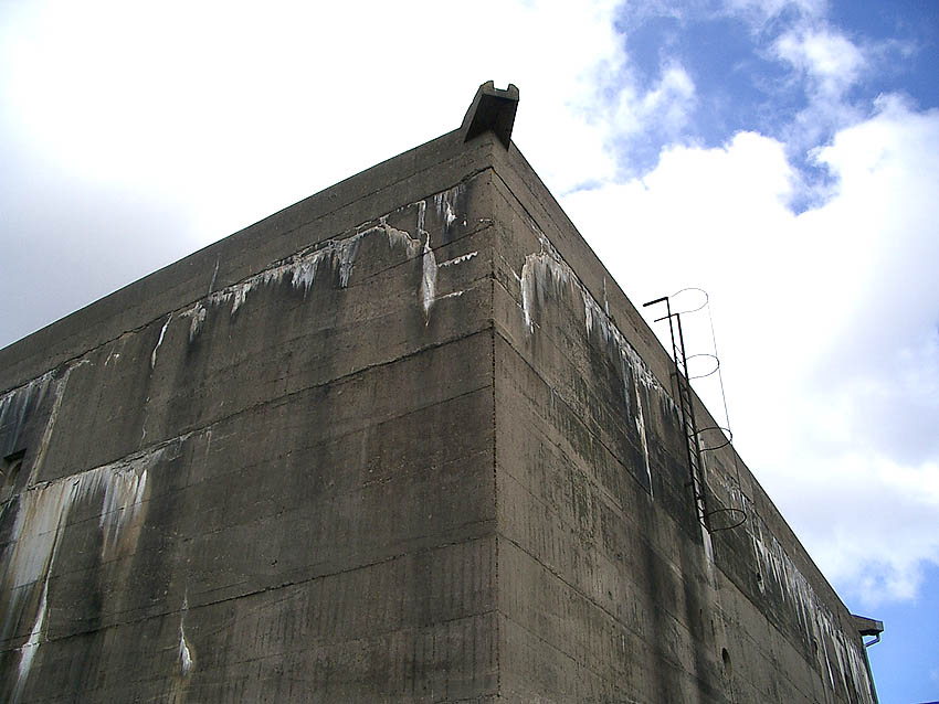 Wandstärke: 2,50 Meter / Deckenstärke: 3,75 Meter (mit leichtem Gefälle nach außen) / Länge (Tiefe): 21,60 Meter / Breite: 21,00 Meter / Höhe: 10,22 Meter