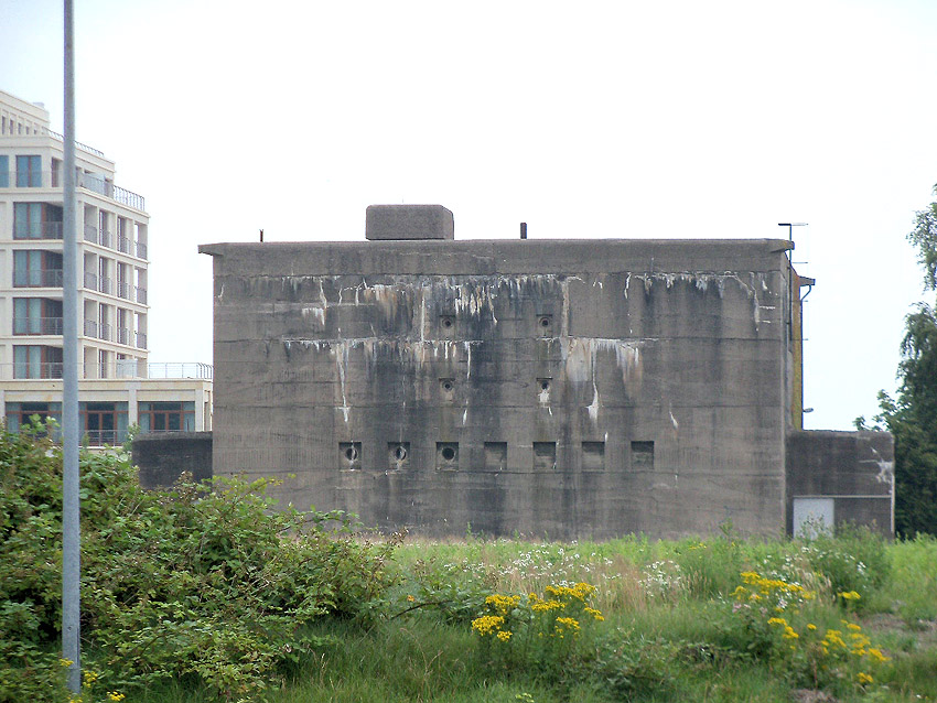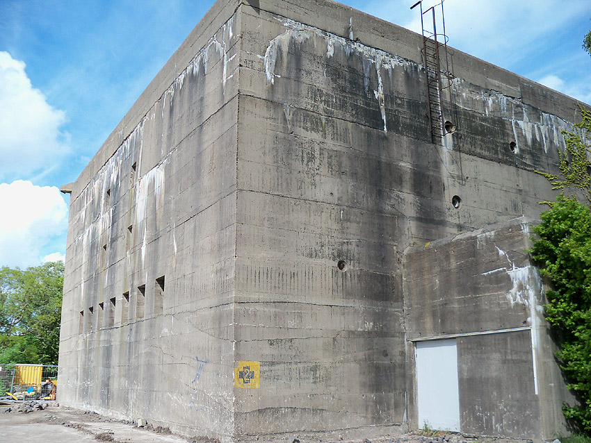 Interessant ist, dass der Aufbau des äußerst massiven Selbstschutz-Standard-Hochbunkers der II. Welle Störtebekerstraße / Sedan in Wilhelmshaven durchaus diverse Ähnlichkeiten zur Gestaltung der Kriegsmarine-Truppenmannschaftsbunker aufweist.