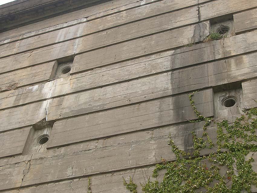 - T 750 Marinehauptquartier Koralle bei Bernau in Brandenburg (dieser Bunker scheint ansatzweise an einigen Bereichen der Außenwände die gleichen Vertiefungen aufzuweisen).