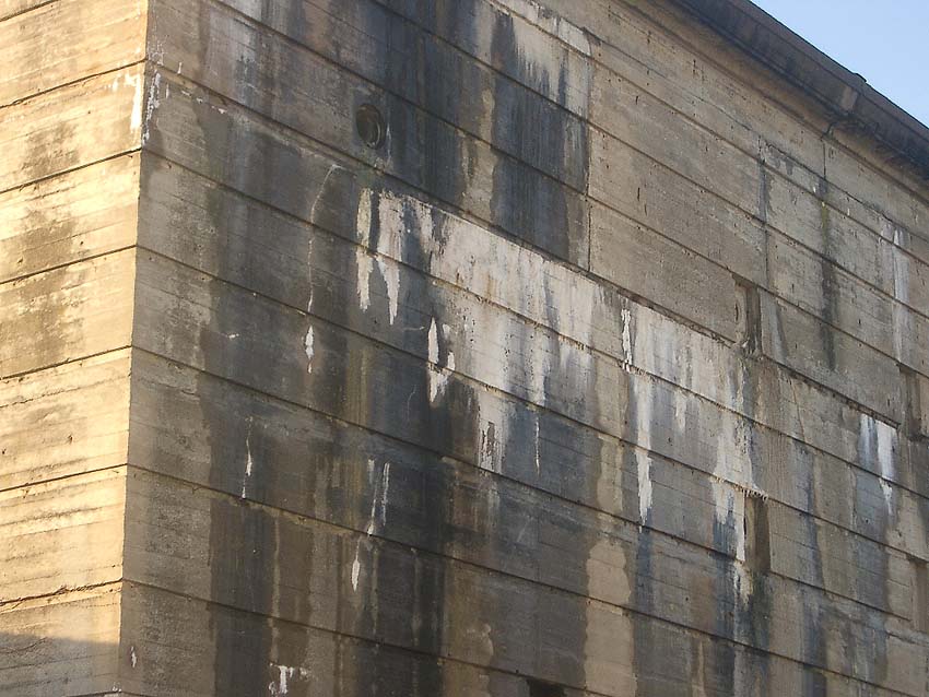 Die Ebene 1-Luftschachtvertiefungen der Stirnseiten sind nachträglich (nicht ganz ausgeschlossen aber auch während des Baues) verkleinert worden.