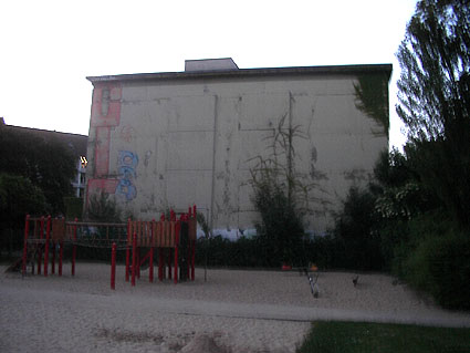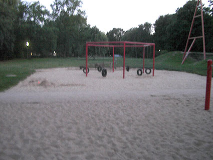 Die Eislaufbahn wurde mittlerweile mit Sand überdeckt und zum Spielplatz umgebaut.
