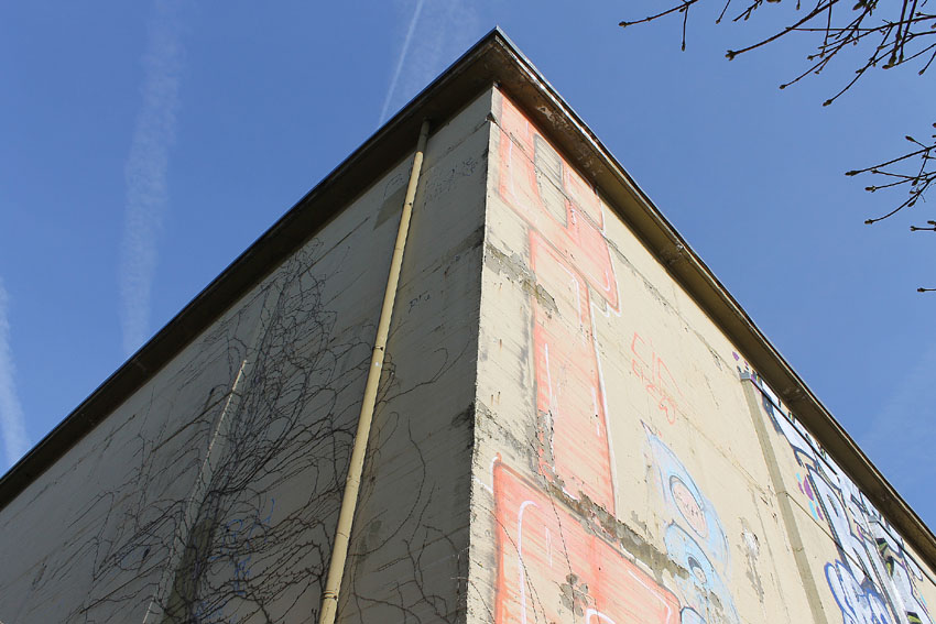 Fast sämtliche ehemaligen, die Entfestigung überdauerten originalen Lüftungsschächte sind im Zuge der späteren Nutzung als Wohnhaus verschlossen worden. Heute finden sich an allen vier Seiten aufgrund der Wiederversiegelung leicht hervorgesetzte Wandbereiche (an den regulären Splitterschutzvorbauseiten einmal, sowie an den anderen beiden Seiten jeweils einmal / Nordseite und wie hier ersichtlich zweimal / Südseite).