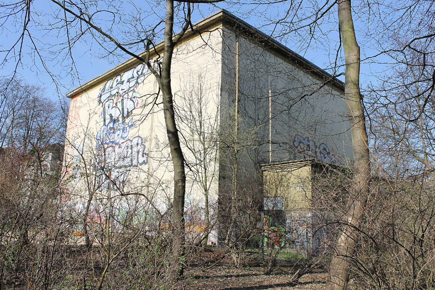 Diese Eislaufbahn in südwestlicher Nähe zum Bunker besteht aus Betonplatten, welche aus dem Krieg stammen könnten. Was haben sie mit dem Bunker zu tun? Reste einer Art Appellplatz oder der umgewandelte Teilbereich einer betonierten Anfahrtsstraße?