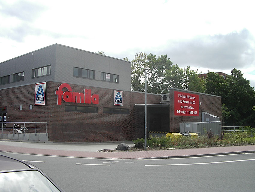 2009 ist das Neubaugebiet mitsamt "Famila-Supermarkt" fertig gestellt. Auf dem Bunkerstandort befindet sich ein Bereich des Supermarktgebäudes und der Kundenparkplatz / Parkplatzeinfahrt...