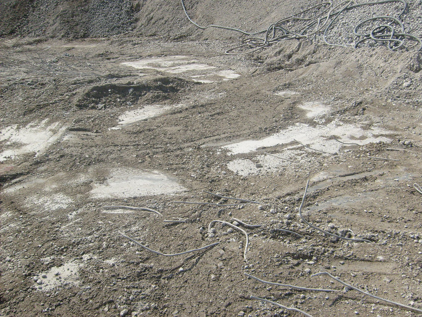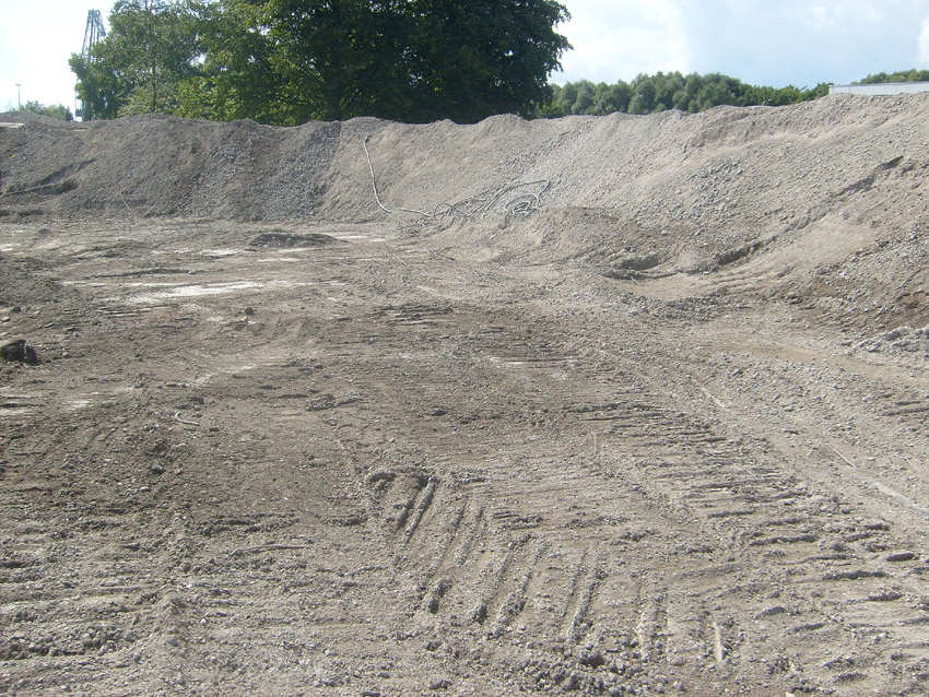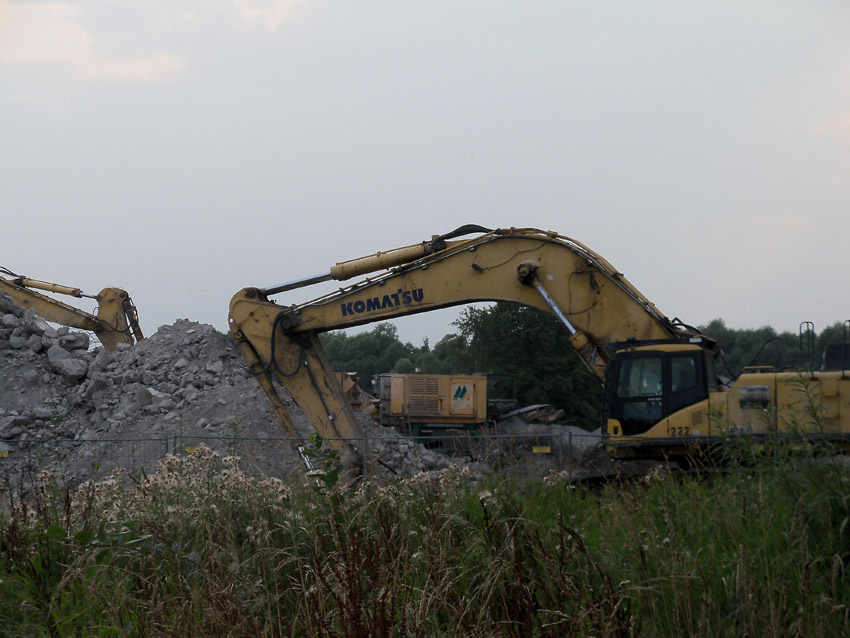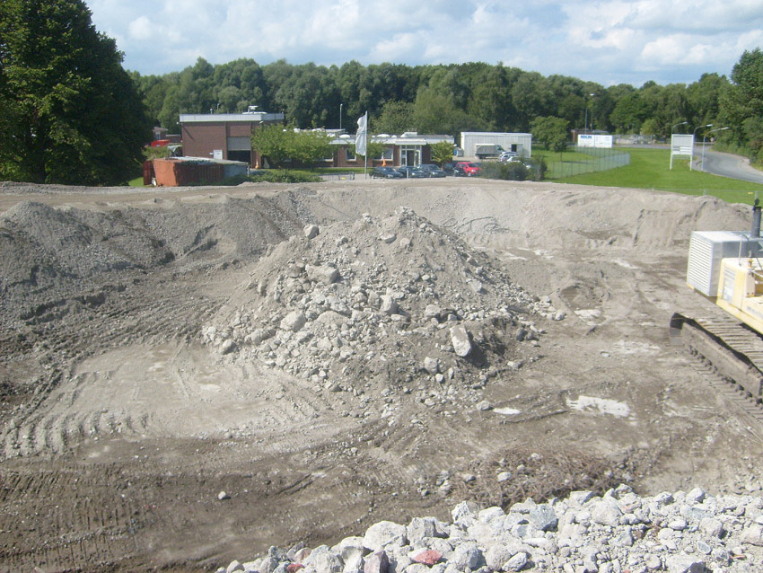 Abrisstag 41 / Abrisstag 42 (Abrisstag 39 - 18.08.12 / Abrisstag 40 - 20.08.12 / keine Bilder): Gestern und heute wurden die Betonzerkleinerungsarbeiten fortgesetzt. Während auf der Fundamentplatte des Ex-T 750 West noch einige wenige Restbereiche, die über Erdniveau übrig waren, beseitigt wurden, wachsen nun auch im Bereich Ex-T 750 Ost die feinen Splittberge...