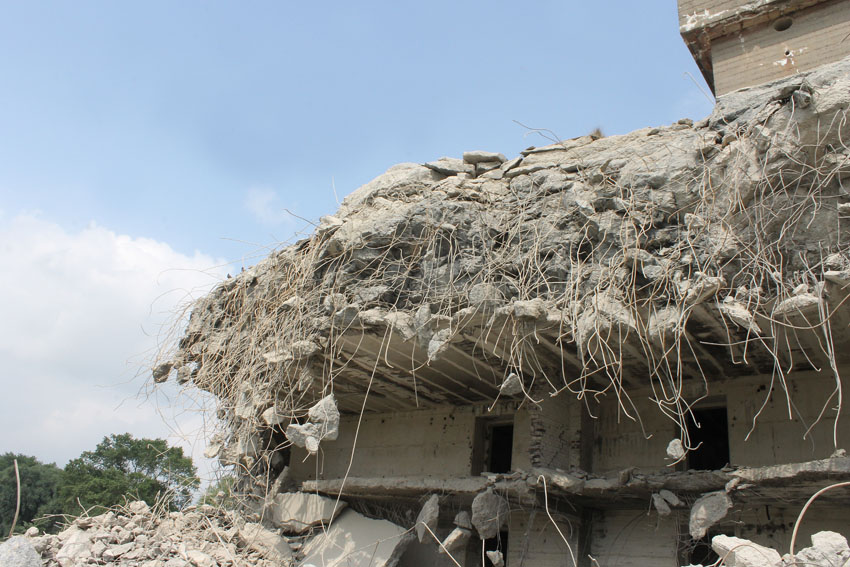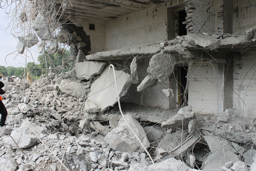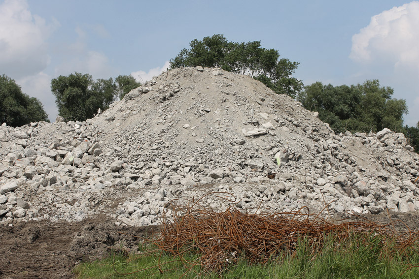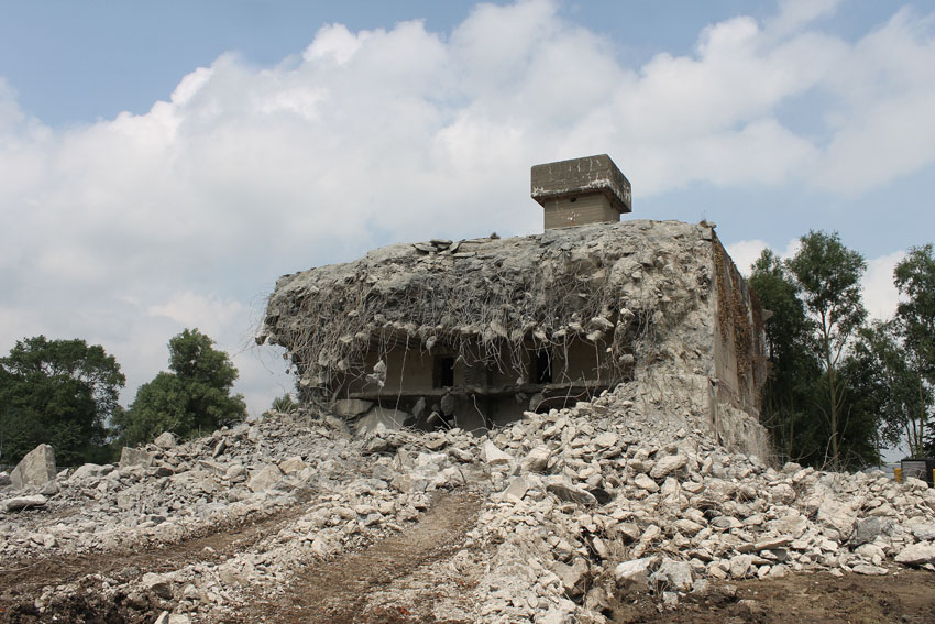 Impressionen vom 29.07.12: Am Freitag, 27.07.12, wurde nicht mehr viel abgebrochen vom Bunker Ost. Heute am Sonntag herrschte trügerische Ruhe auf dem Rückbaugebiet. Sogar eine Ente mit ihren Jungen hat sich in einen vermeintlichen "Teich" verirrt. Wir können nur hoffen, dass sie mit ihrem Nachwuchs schleunigst das Weite sucht, denn schon morgen beginnt von allen Seiten der Endschlag gegen T 750 Ost...