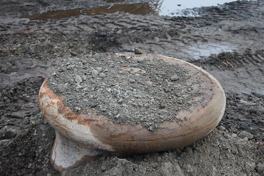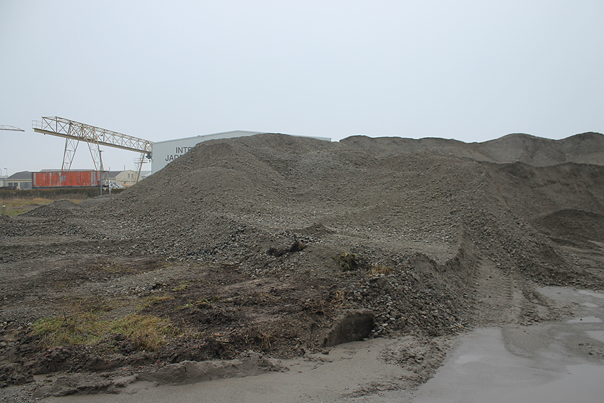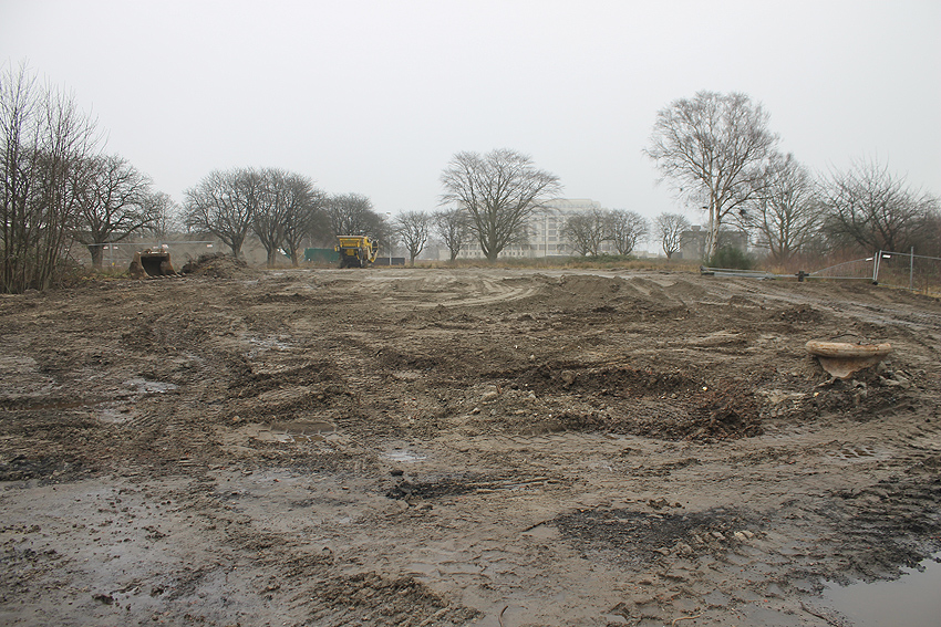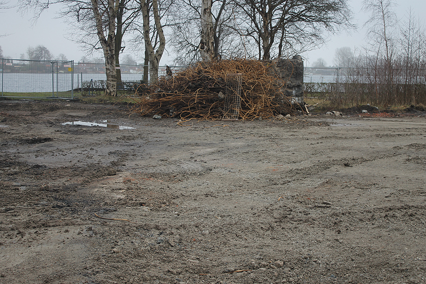 Der T 750-Trümmerberg wurde mittlerweile so gut wie gänzlich durch die Brechmaschine befördert und liegt nun als gigantischer Schotterhaufen nordöstlich des ehemaligen Bunkerstandortes. Der Abrissbereich wurde von Resttrümmern bereinigt. Bald werden die noch verbliebenen schweren Abbruchmaschinen und auch die Brechmaschine abziehen. Eine große Freifläche klafft nun dort, wo vor nicht allzu langer Zeit noch der T 750 stand...