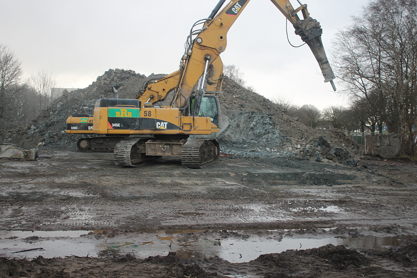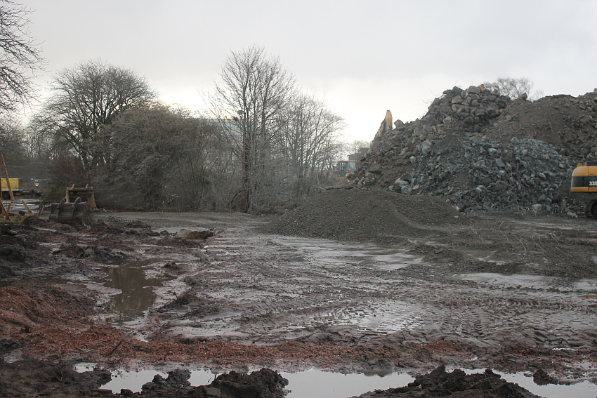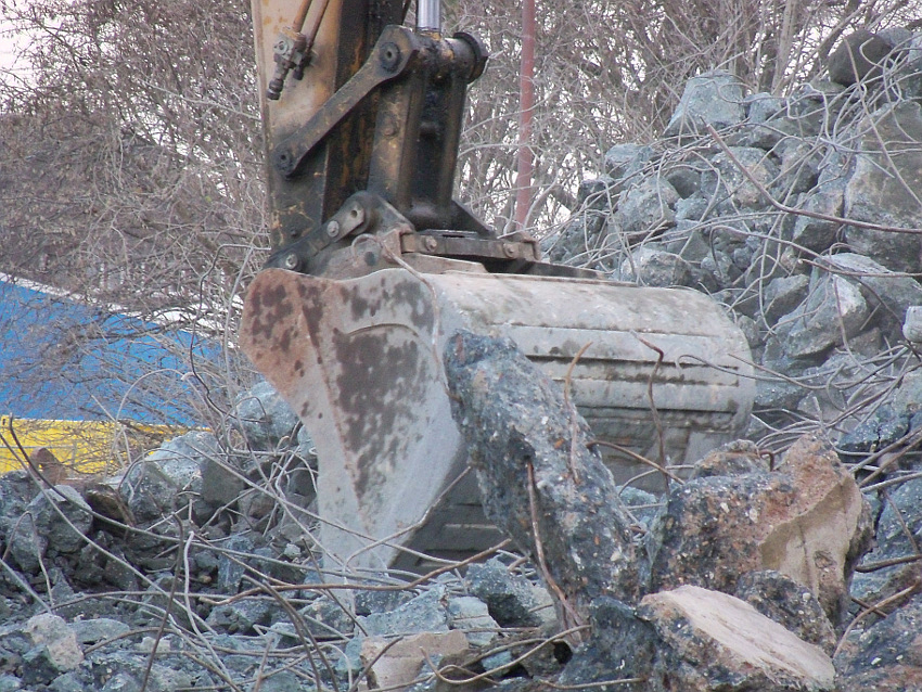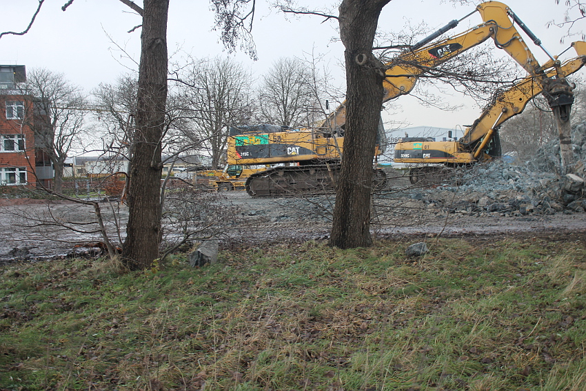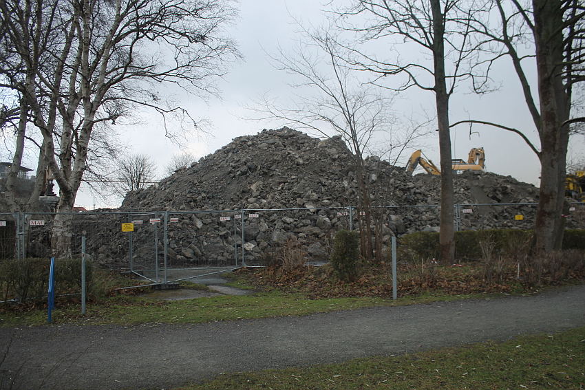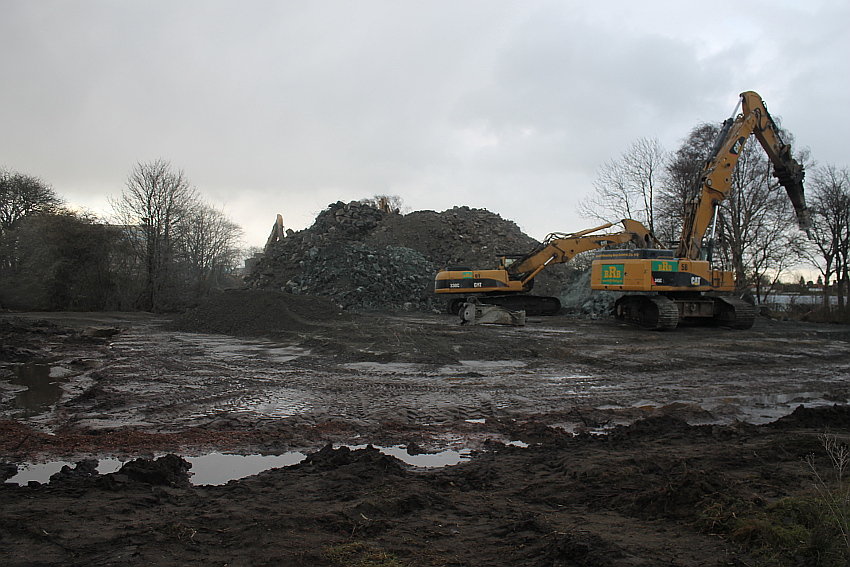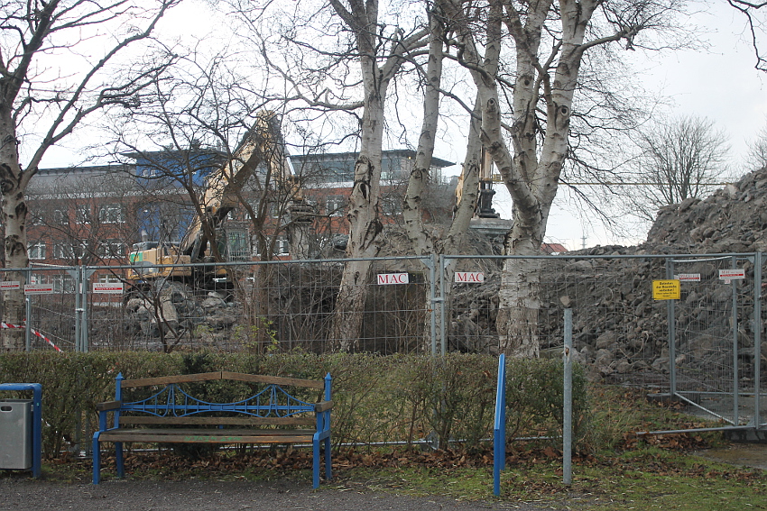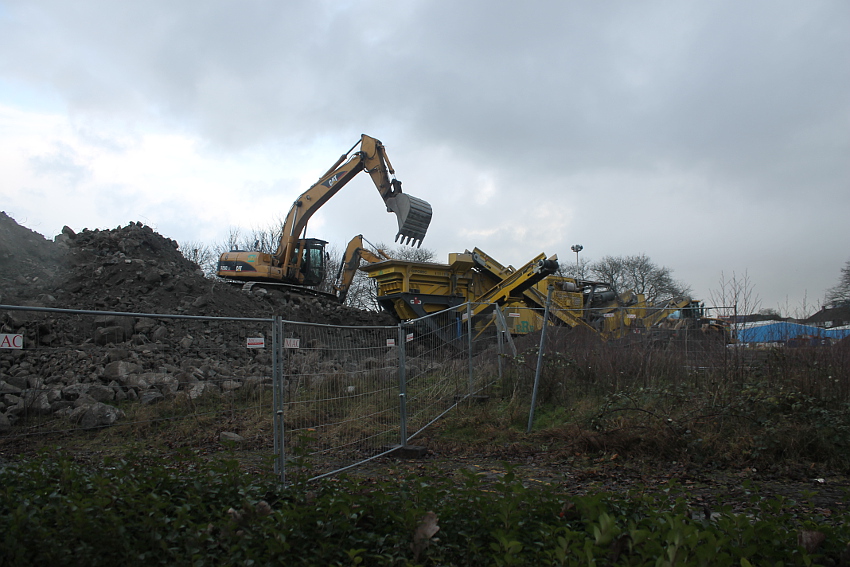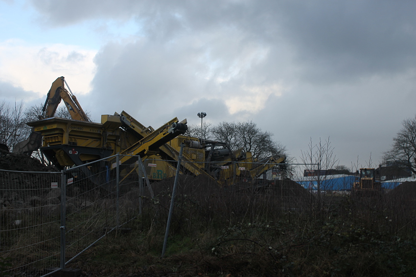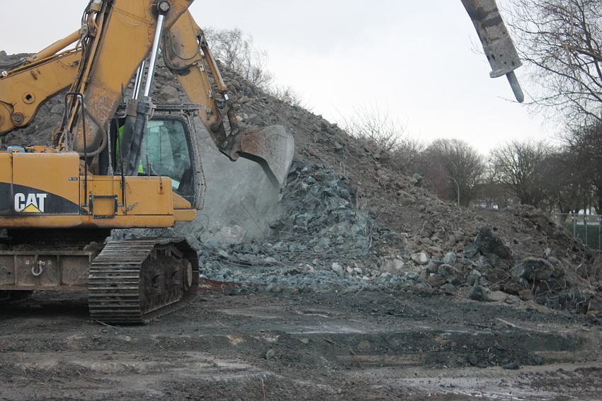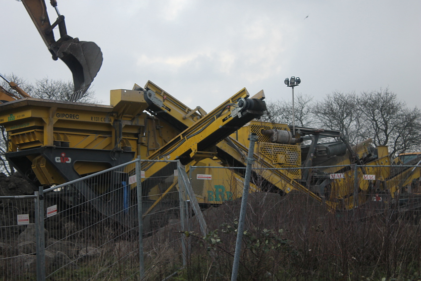 Das Ende des oberirdischen Rest-T 750 steht nun bevor. Mit geballter Kraft wurde am heutigen Tage gegen die noch verbliebenen Reste im Südbereich eingemeißelt. Bei beißendem Ostwind haben wir es heute allerdings nicht allzu lange am Banter See ertragen können.