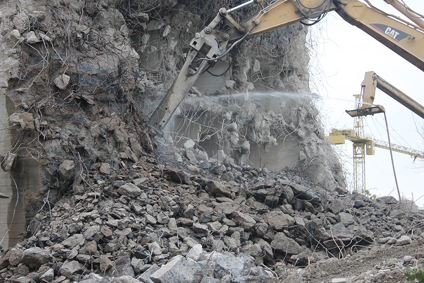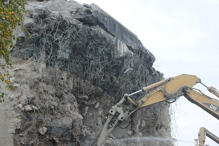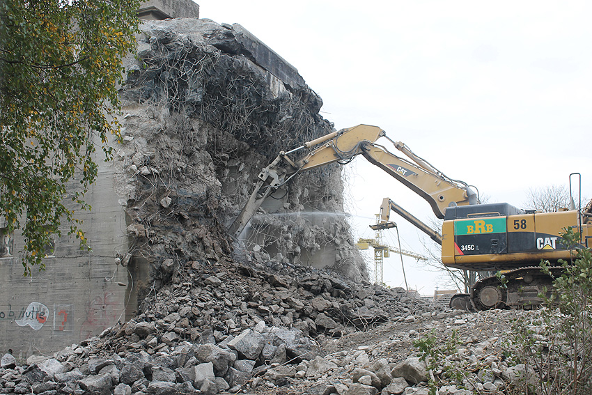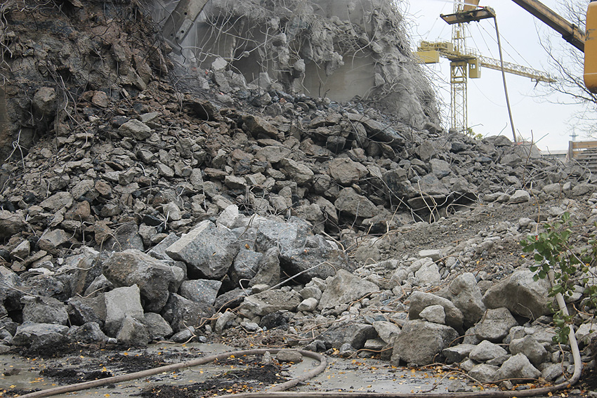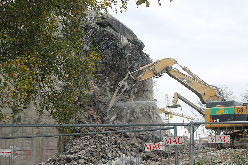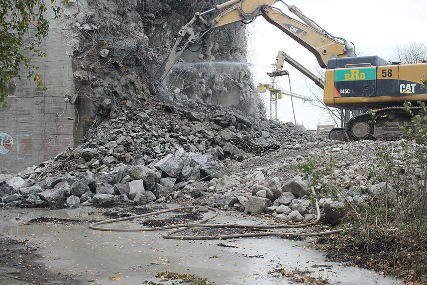 In dem Fernsehbericht wird erläutert, dass der Abriss mühevoller als geplant vonstatten geht. Auch über den kürzlichen Ausfall eines Baggers wird berichtet. Ende dieses Monats sollen dann Lockerungssprengungen (!) den Abriss beschleunigen. Der Abbruch soll nun Ende November (...) statt Mitte November vollzogen sein...