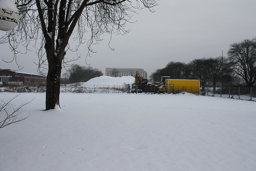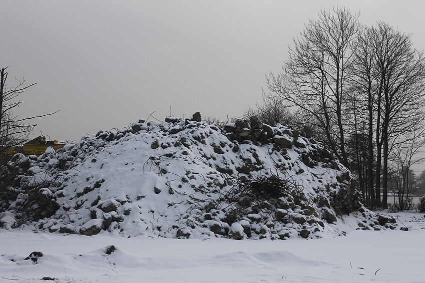 Vor einigen Wochen war schon mit der beruhigenden eisigen Schicht über den Trümmern zu rechnen gewesen. Doch erst jetzt, nachdem der T 750 selbst bereits Geschichte ist und die Nachbereitungen des Abrisses laufen, kam der Schnee im Januar 2015 heran... Heute am Samstag wurde nicht gearbeitet. Die Bilder entstanden in eisiger Stille. Die nächsten Fototermine haben wir für Sonntag, 1. Februar, Sonntag, 8. Februar und Sonntag, 15. Februar angesetzt. Damit endet dann die reguläre Dokumentation.