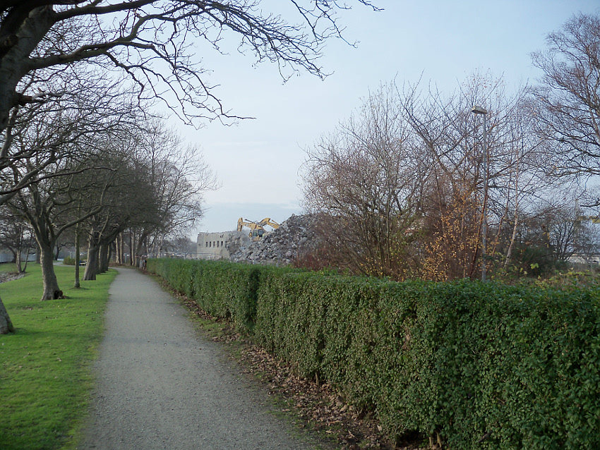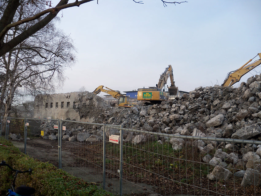 Begonnen hat der Abriss im September bei spätsommerlicher Wärme. Heute stand beißende Kälte in der Luft an der Rückbaustelle. Der erste Schnee wird eventuell bald fallen. Das Laub der Bäume ist fast verschwunden. Der Herbst geht langsam in den Winter über. Dies kann man im übertragenen Sinne auch auf die nunmehr letzte Existenzphase des T 750 beziehen...