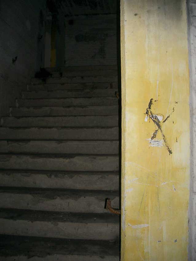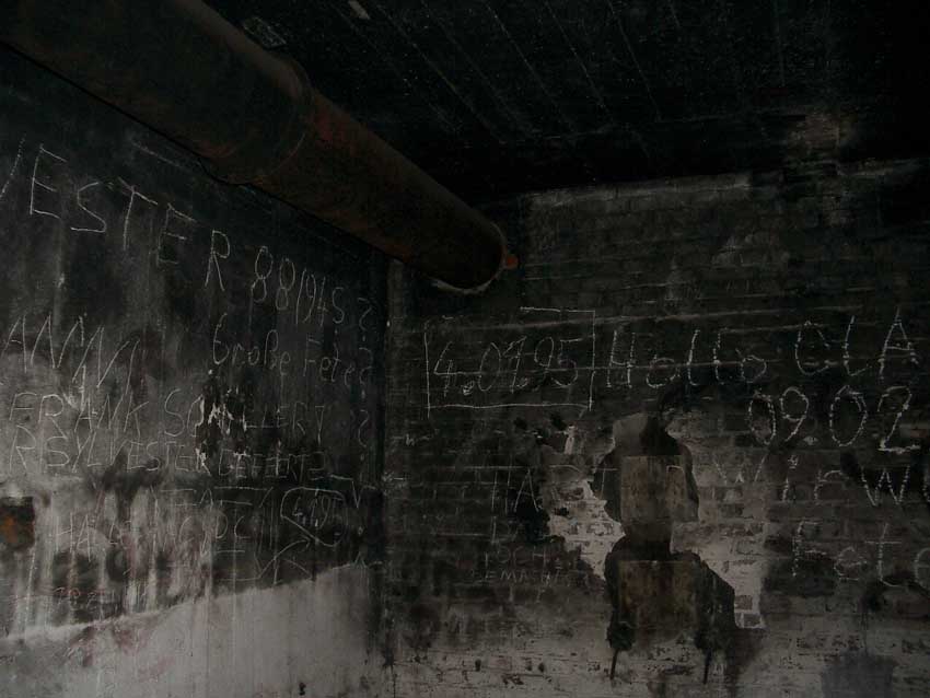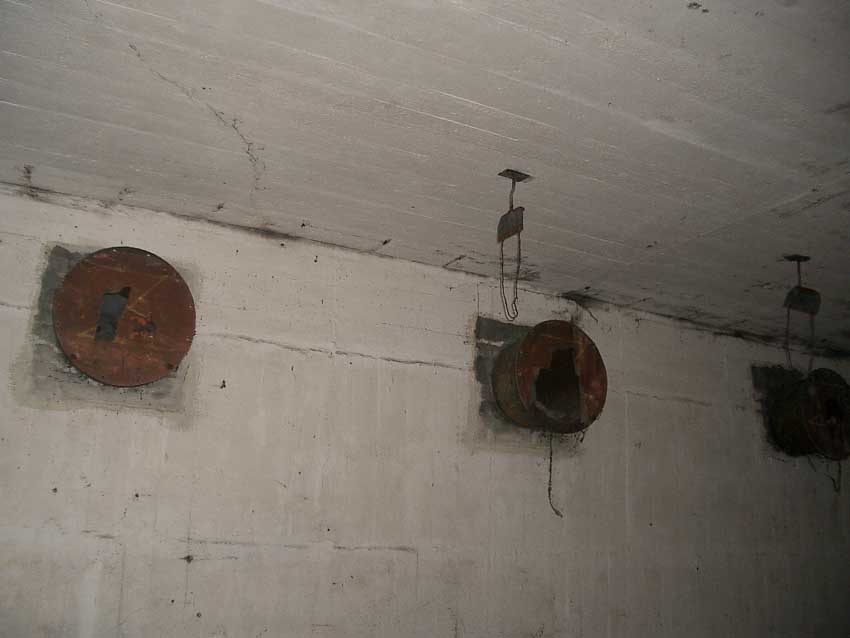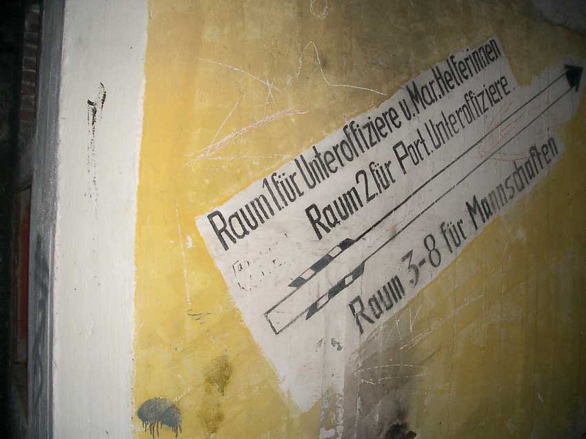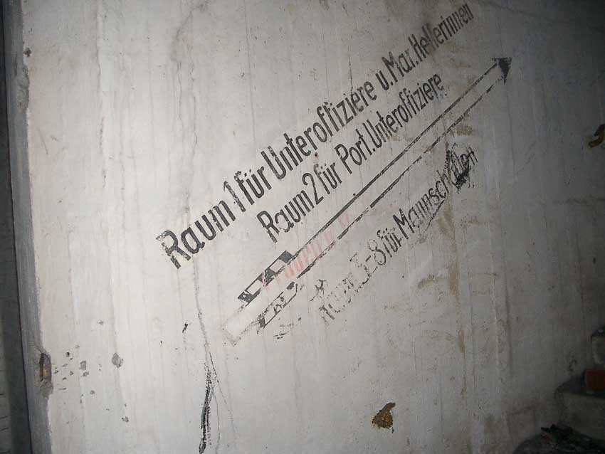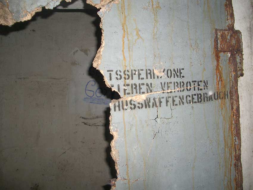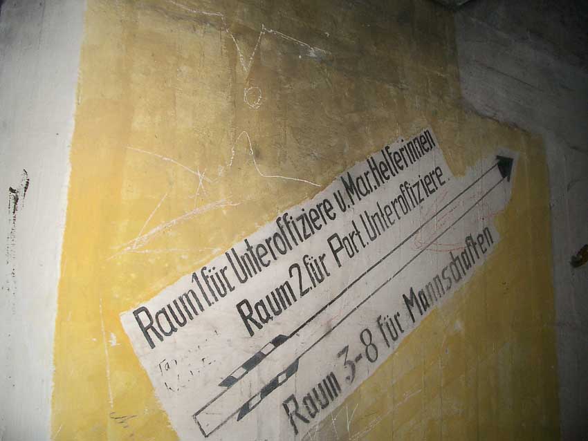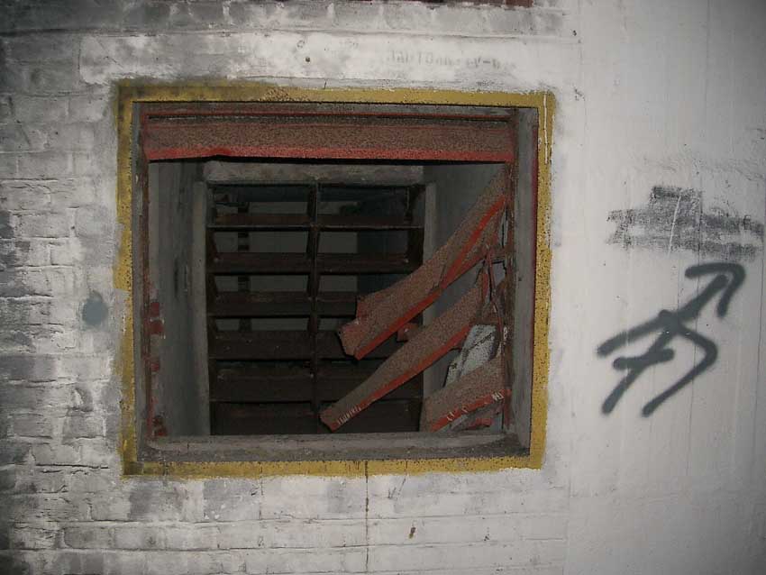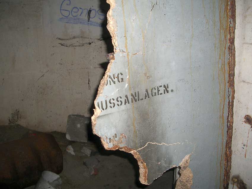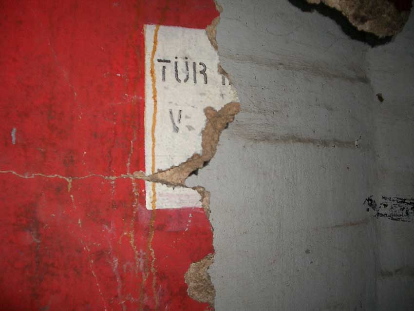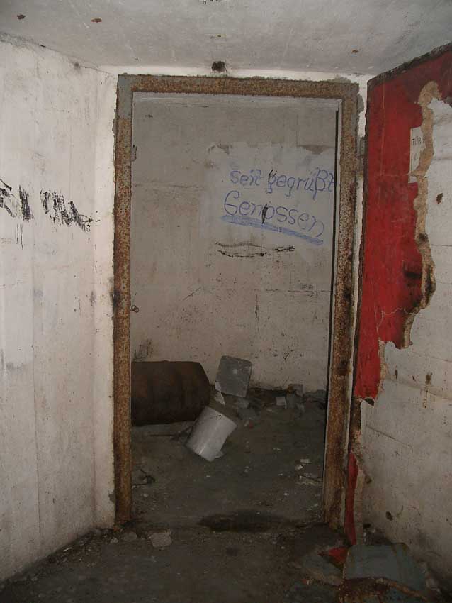 Randbemerkung: In den frühen 1990er Jahren stand der Bunker noch zeitweise "offen", die auf einigen Bildern ersichtlichen gelben / roten Felder und Umrandungen wurden zu dieser Zeit eventuell illegal von Jugendlichen mit Wandfarbe oder Acryllack angebracht...
