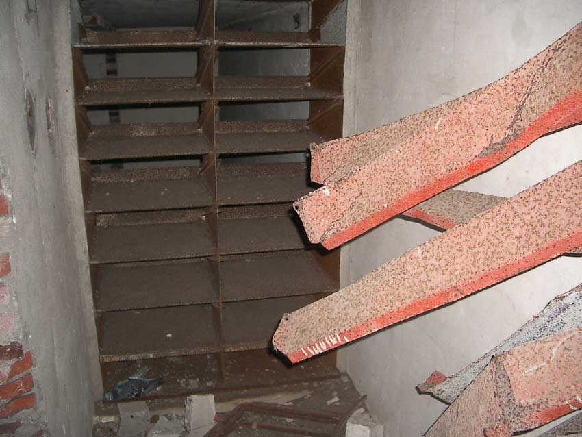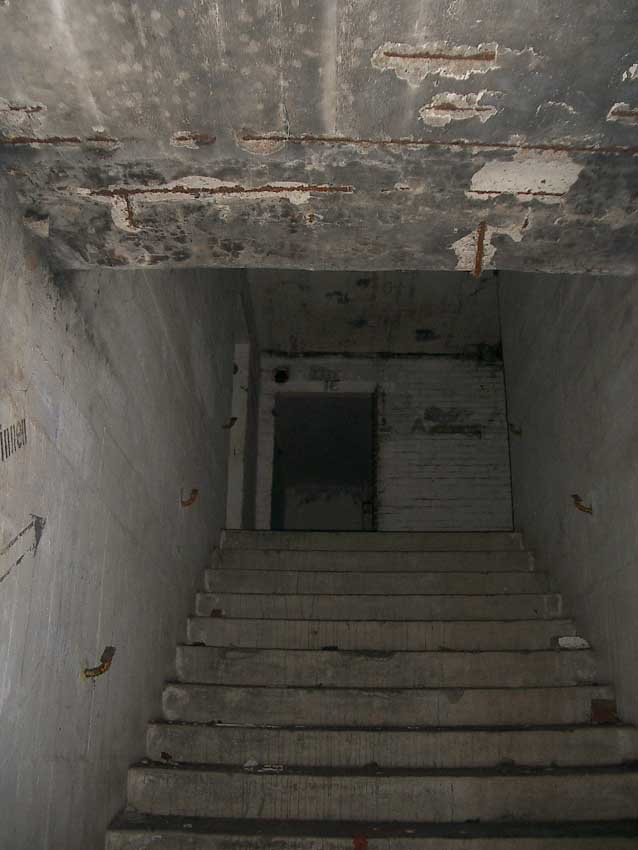 Randbemerkung: Schriftzug "... Radioaktiv": Keine Kriegsinschrift. Wohl in den späten 1980er Jahren hatte laut Auskunft von Niedersachsenports ein Händler hier sein Lager. Gelagert wurde Restmüll, auch giftiger und schwach radioaktiver Sondermüll. Dieser nachträglich fast gänzlich zugemauerte Raum unter einem der beiden Treppenaufgänge schien die Lagernische für radioaktiven Restmüll gewesen zu sein...