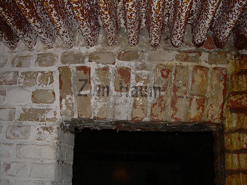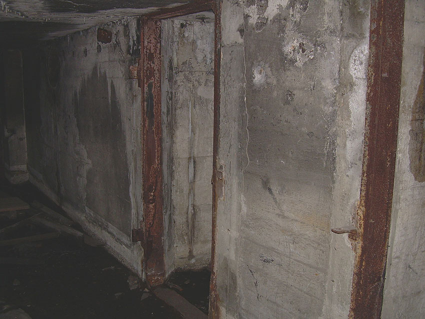 Ein Nebenraum im T 750-Erdgeschoss mit einem gemauerten Türsturz und Stahllamellendeckenarmierung. Im Hintergrund liegt das Treppenhaus.