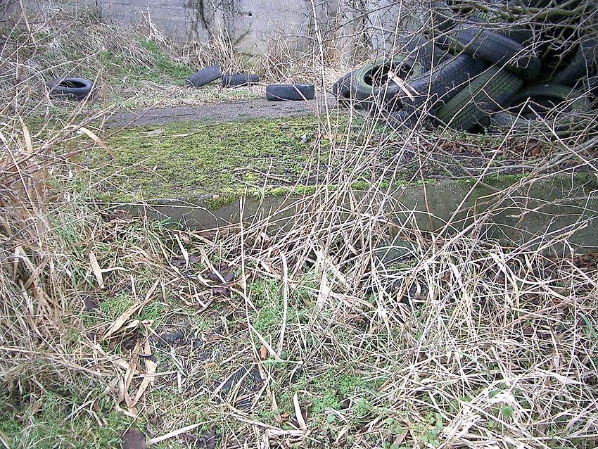 Hier Details der vier Lüftungsschachtöffnungen Ebene 1 der Südstirnseite des Bunkers. Sie liegen durch das Versacken des Bunkers hier nun an der Erdgleiche und teilweise auch schon im Erdreich. Der Verdacht ist gegeben, dass auch heute noch der Bunker weiter in die Erde sackt...