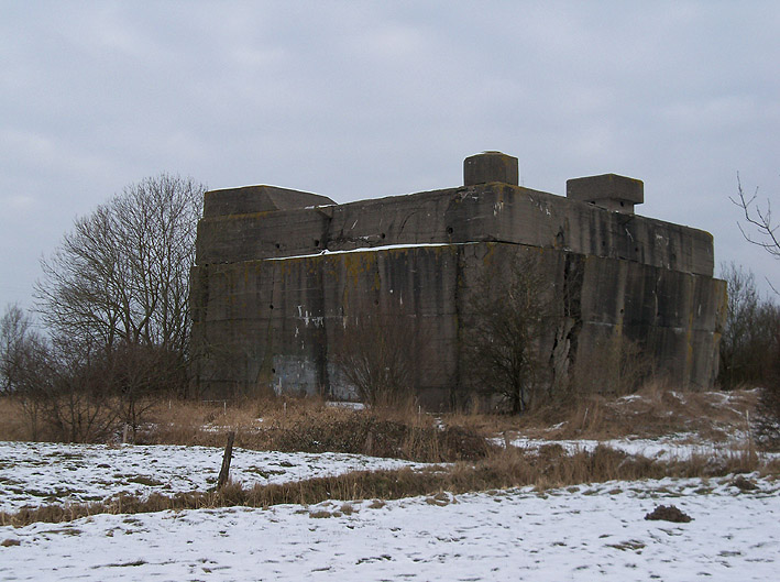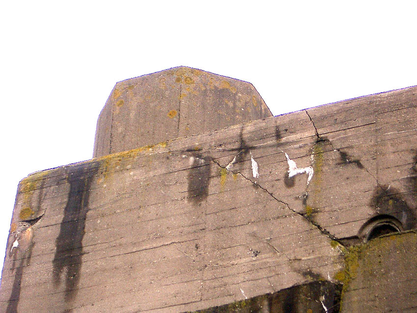 Nachtrag 01.02.10: Die Aufbauten auf dem Dach stellen zwei Tobrukstände einfachster Bauform und eine betonierte Flakbettung dar. Zur Nutzung der Aufbauten wird es jedoch sehr wahrscheinlich nie gekommen sein.