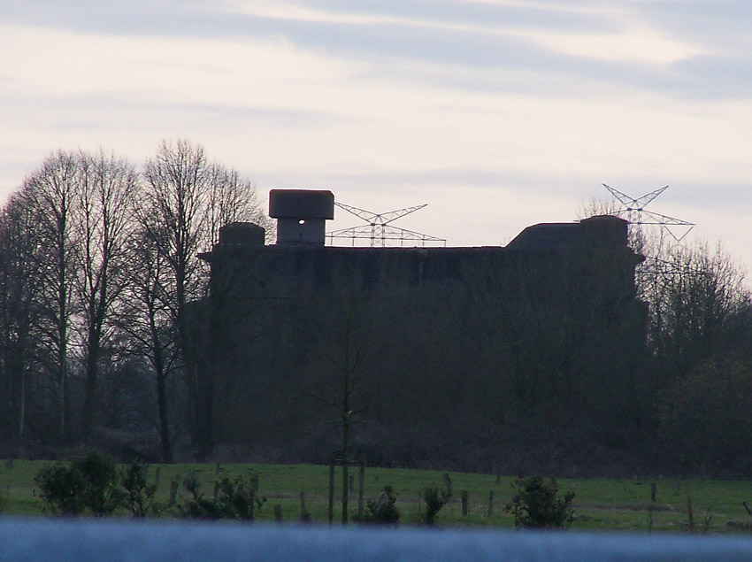Eine Art Schöpfwerk -oder Pumpenhaus befindet sich ebenfalls östlich des Bunkers. Es könnte aber auch ein Trafogebäude sein. Auf dem betonierten Dach des eventuell verbunkerten Gebäudes befinden sich vier Vertiefungen. Mutmaßlich Aufnahmen für Pflanzwerk zur Tarnung des Daches? Das Bauwerk stammt aus Kriegszeiten, die Fertigung erfolgte wohl zusammen mit dem Truppenbunker...