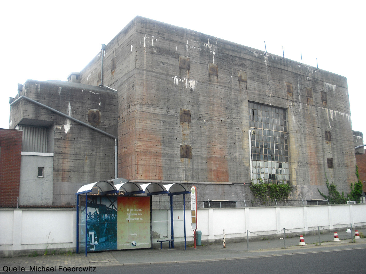 Weitere Schutzanlage - Der LS-Turm der Bauart Dietel nahe des Werksgeländes: Der Luftschutzturm wurde mit dem Namen: "Boelcke-Turm" versehen.