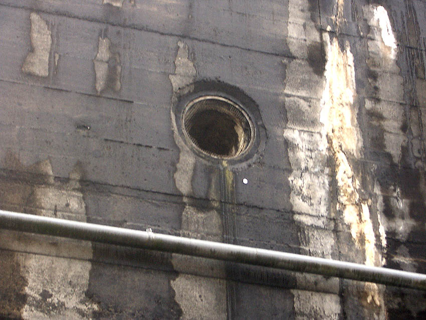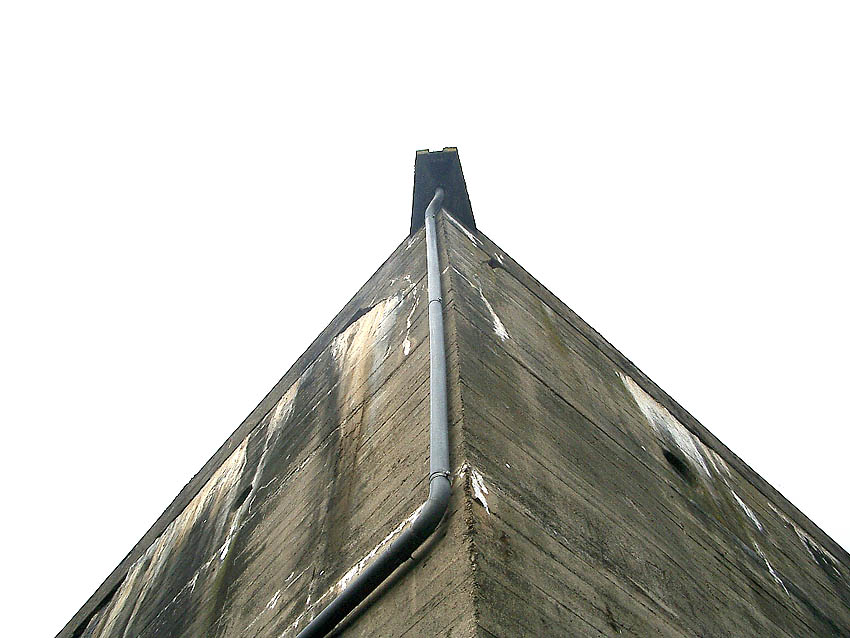 Der westliche der beiden Lüftungstürme. An diesem Turm befindet sich ein Mast...