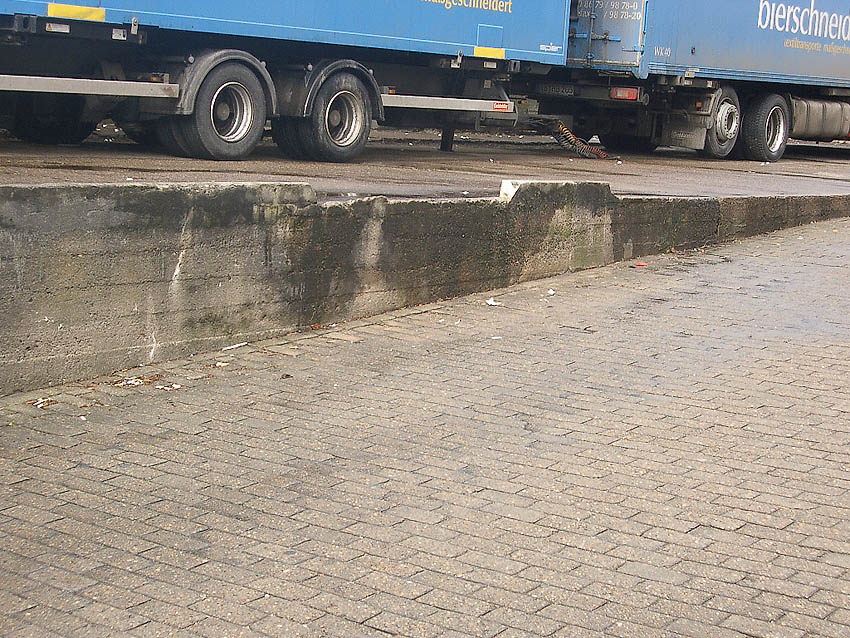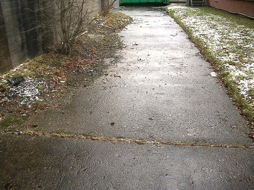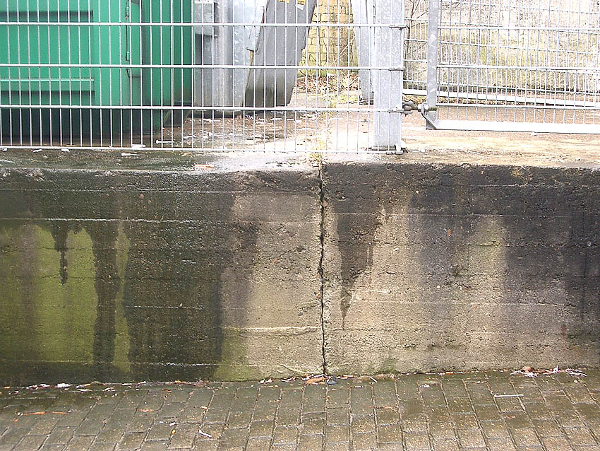 Grenze zwischen Fundament (rechts) und Zerschellerplatte (links):
