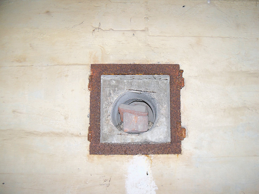 Im nördlichen Splitterschutzvorbau, links der vermauerte Bereich des ehemaligen Stahlschiebetores mittig des Vorbaues...