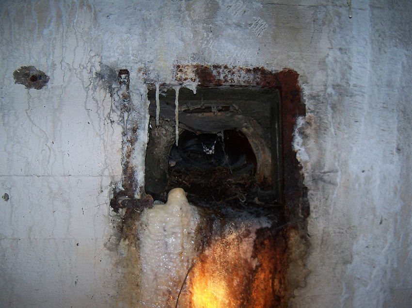 Wieder die Aufnahmen der ehemaligen Steigleiter. An dem darunter liegenden Splitterschutzvorbau Süd fehlen die Aufnahmen...