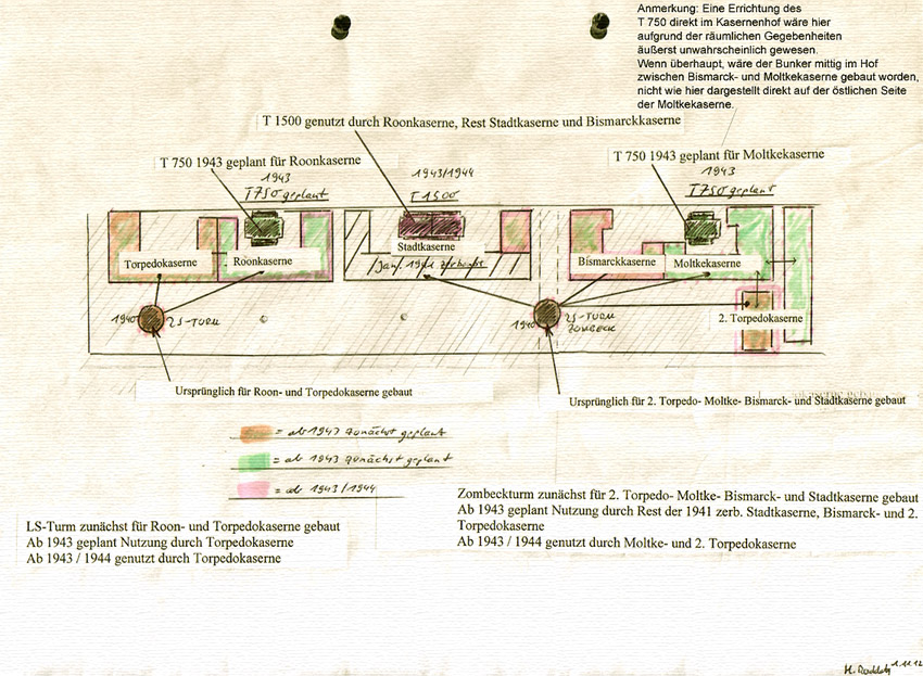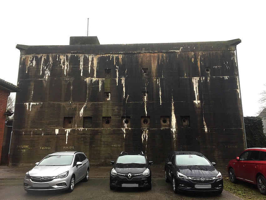 Interessant ist, dass der Aufbau des äußerst massiven Selbstschutz-Standard-Hochbunkers der II. Welle Störtebekerstraße / Sedan in Wilhelmshaven durchaus diverse Ähnlichkeiten zur Gestaltung der Kriegsmarine-Truppenmannschaftsbunker aufweist.