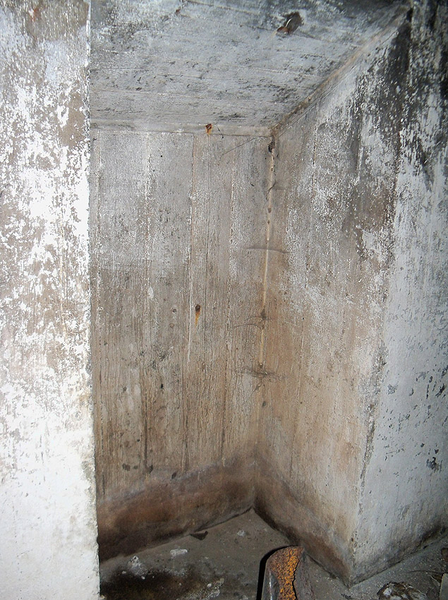 Nischen in den Splitterschutzvorbauten: Diese waren höchstwahrscheinlich für dort hineingestellte Müllaufnahmekisten zur Ablage von eventuell kontaminierten Kleidungsstücken gedacht.