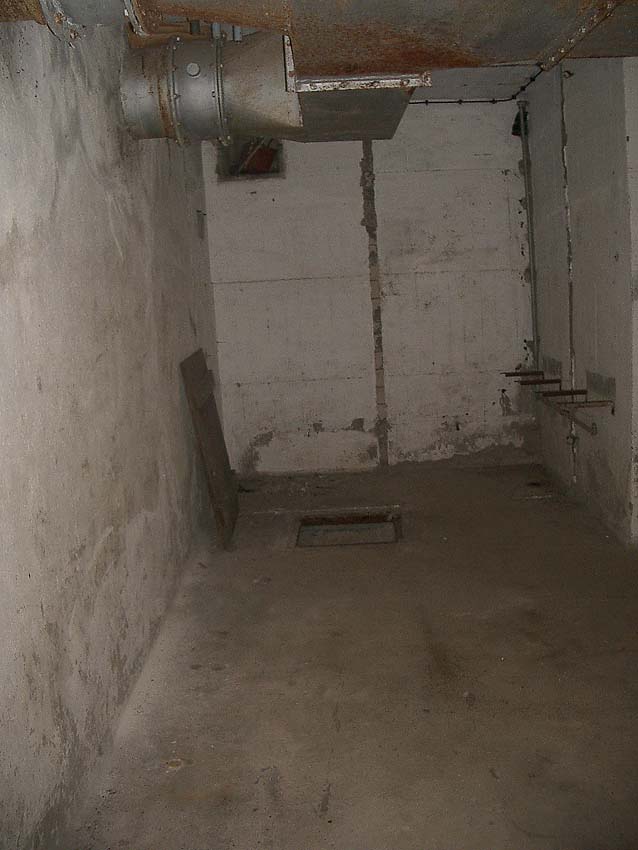 In einer derartigen Mulde in Ebene 1 der Bunker befand sich die Hauptwasserzuleitung mit Ventil.