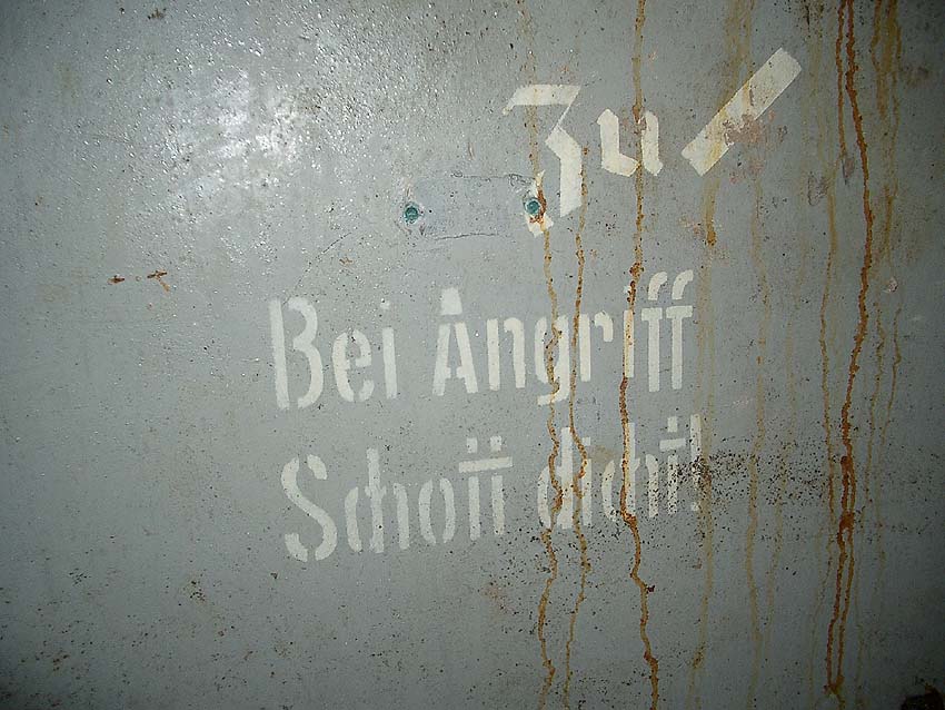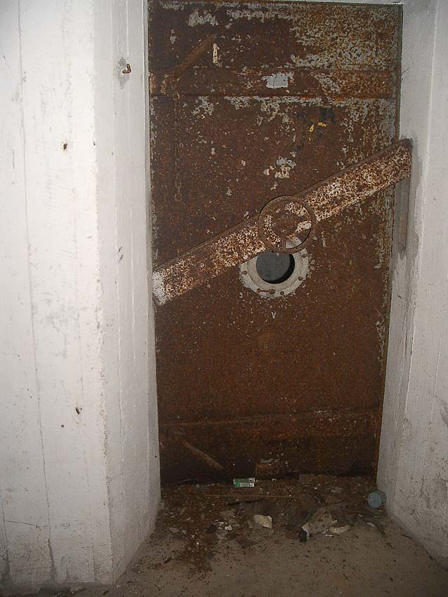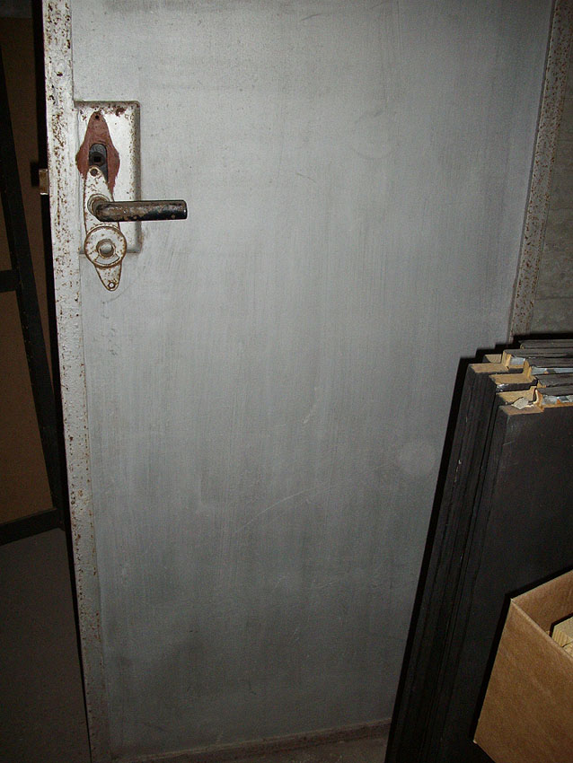 Wieder andere Türen in Truppenmannschaftsbunkern bestanden oft aus Eternit, besonders diejenigen in den Abortbereichen. Es wird sich hierbei wohl um die so genannten "Fortis"-Schutzraumtüren in eisensparender Bauweise der Eternitwerke in Berlin handeln: