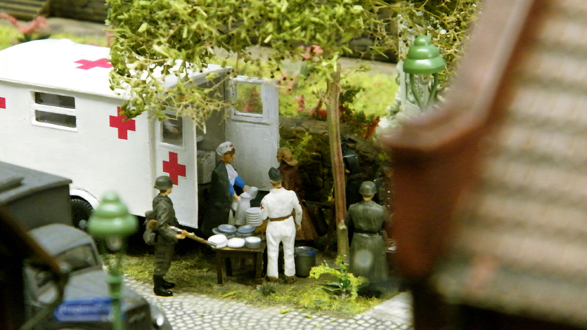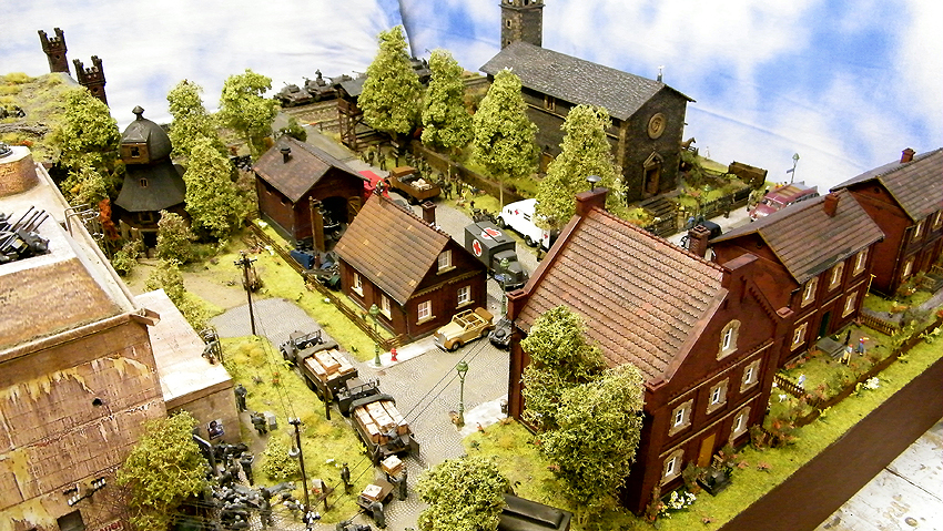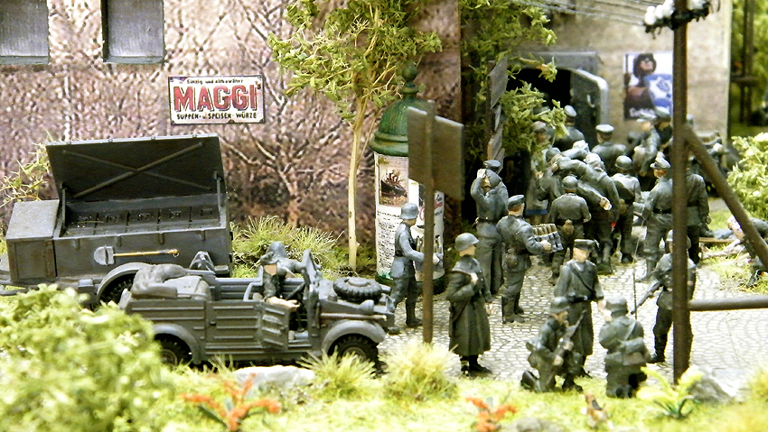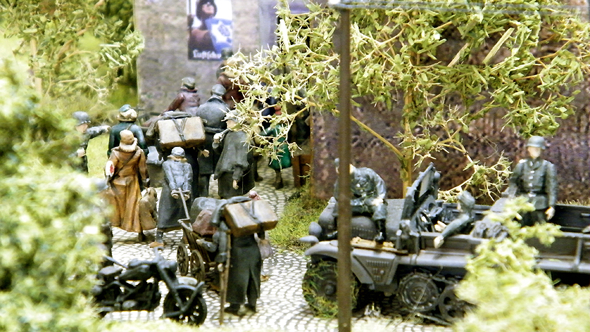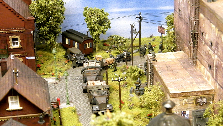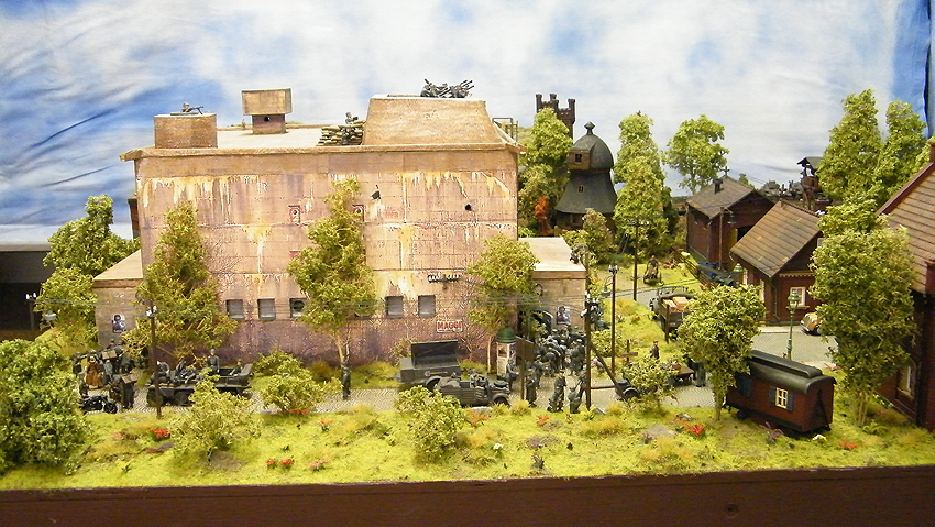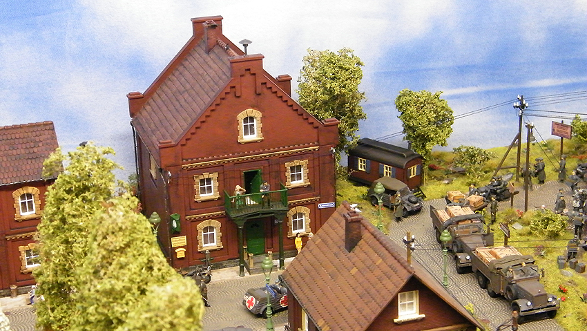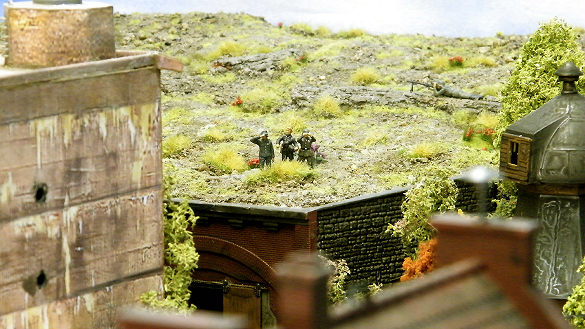 So sieht das Modell im individuell erweiterten Zustand aus. Vielen Dank an Herrn Schmidt für die schöne Arbeit. Herr Schmidt hat nun das Diorama erweitert. Entstanden ist eine ganze Geschichte voller Leben in dieser Modelllandschaft. Auch der Splitterschutzunterstand Alaska ist im Diorama vertreten. Wir sagen Danke für dieses Werk!