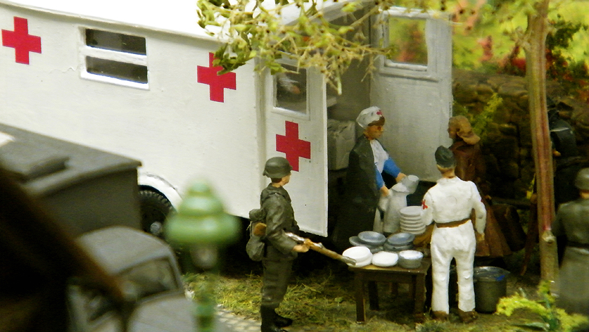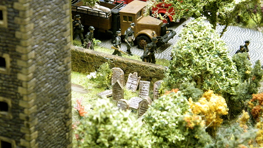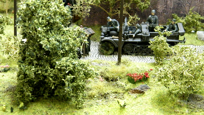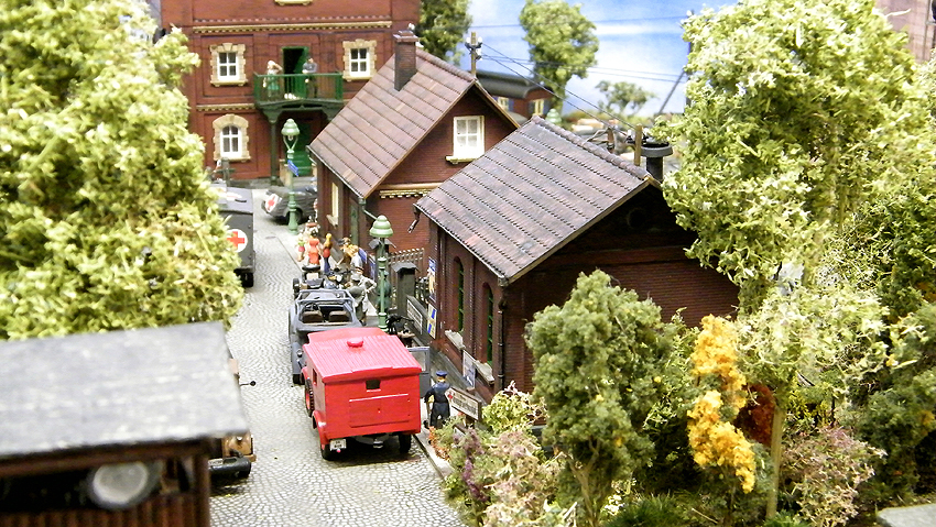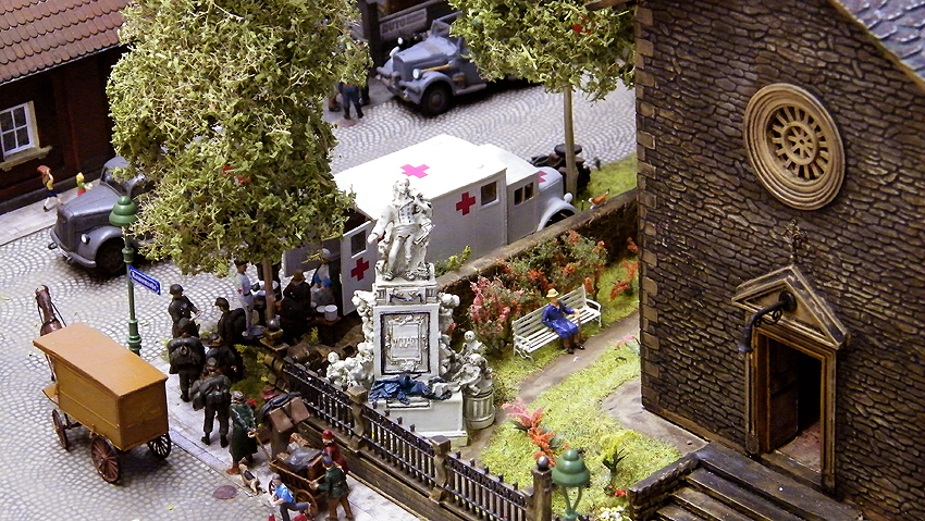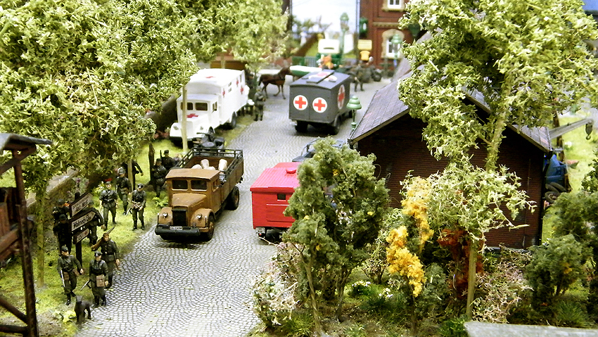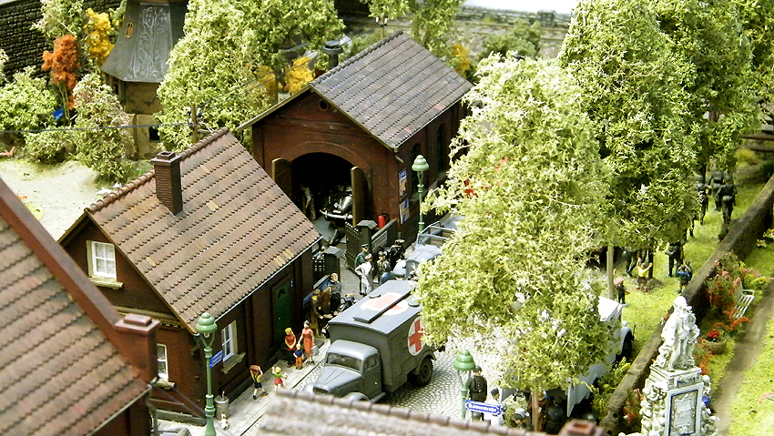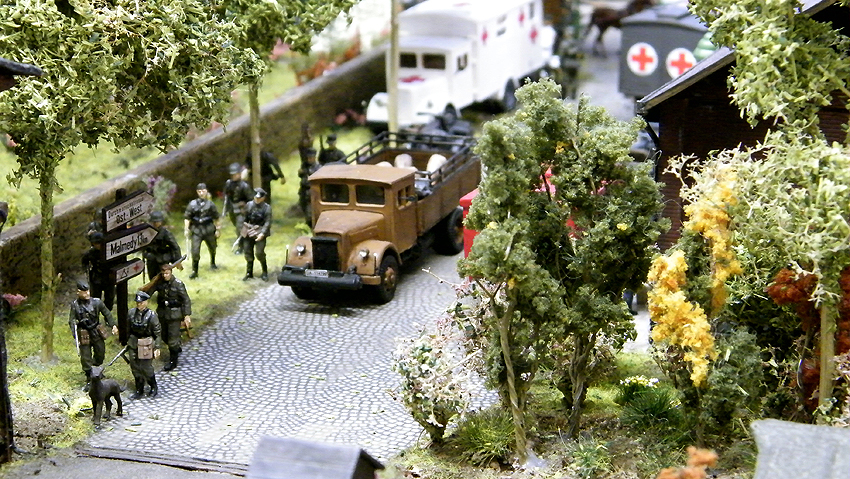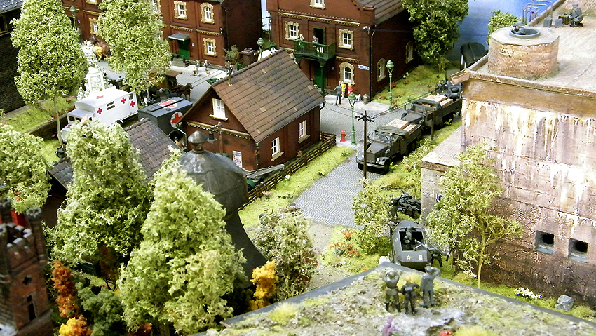 So sieht das Modell im individuell erweiterten Zustand aus. Vielen Dank an Herrn Schmidt für die schöne Arbeit. Herr Schmidt hat nun das Diorama erweitert. Entstanden ist eine ganze Geschichte voller Leben in dieser Modelllandschaft. Auch der Splitterschutzunterstand Alaska ist im Diorama vertreten. Wir sagen Danke für dieses Werk!