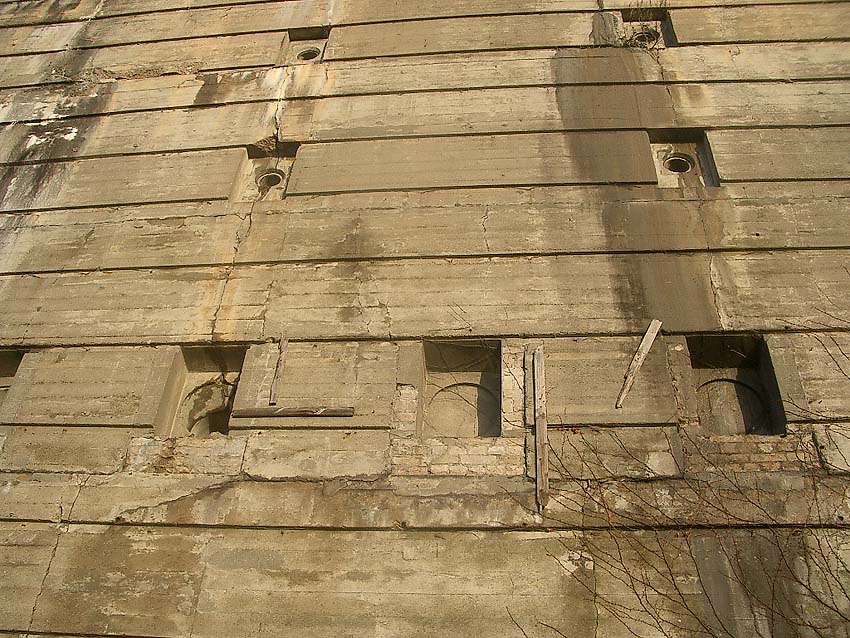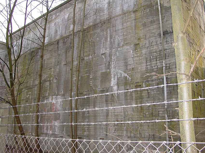 Ganz links ist einer der Schächte in der dort ersichtlichen nachträglichen Vermauerung nach dem Krieg augenscheinlich weiter genutzt worden.