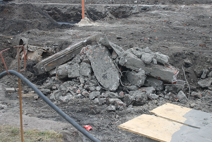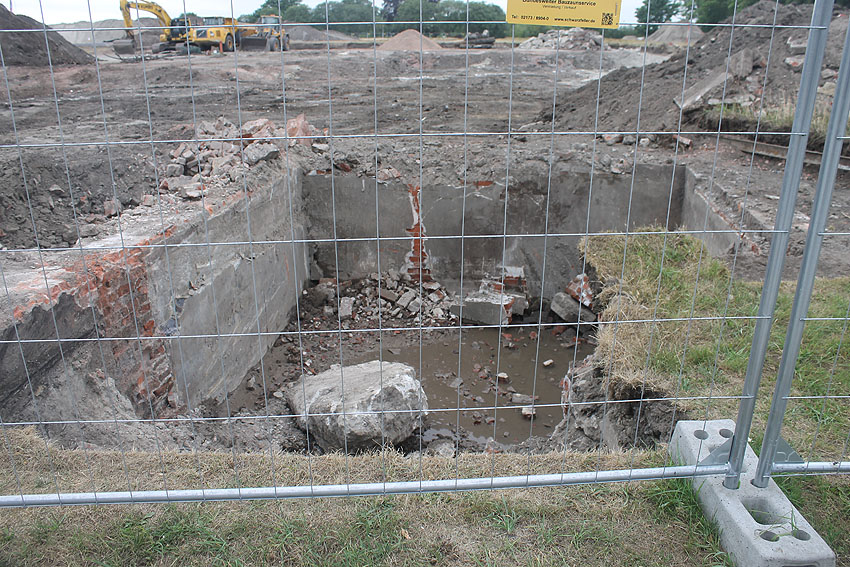 Anmerkung zum Tankfundament: Dieses wird - wie die Fundamente diverser Wilhelmshavener LS-Bunker - auf Holzpfählen ruhen. Die Pfähle werden trotz Fundamentabriss (großteilig) im Erdreich verbleiben.