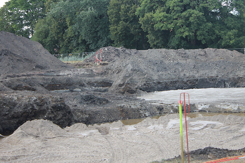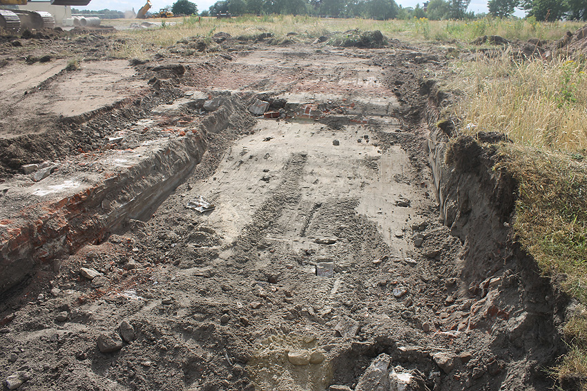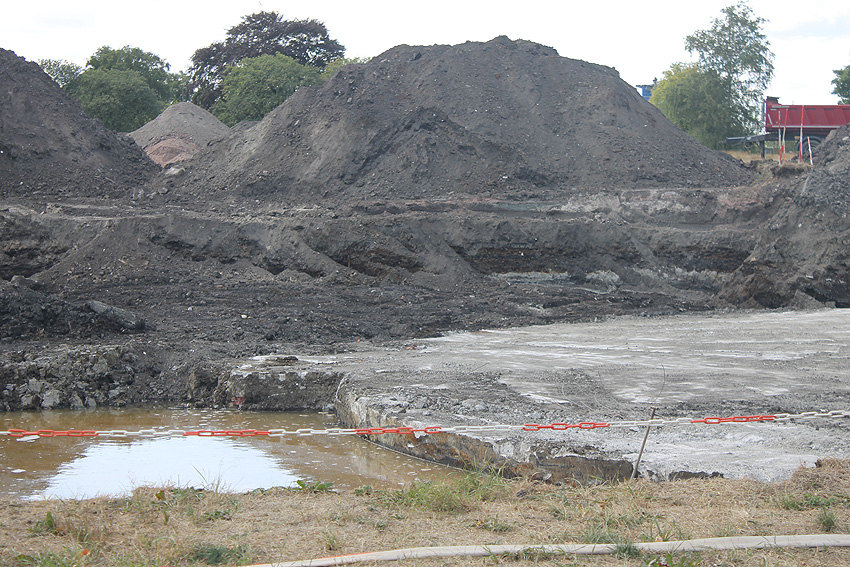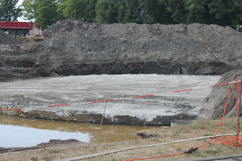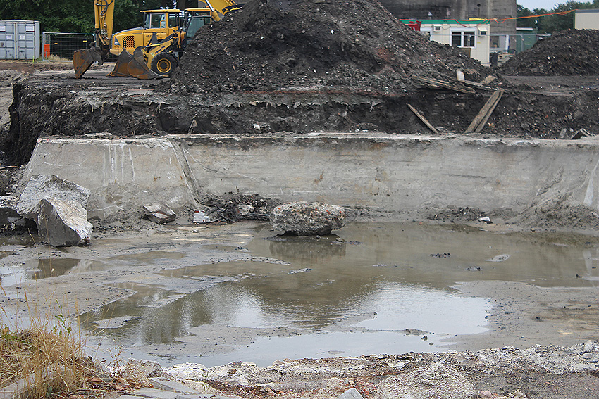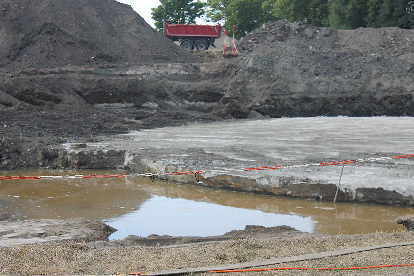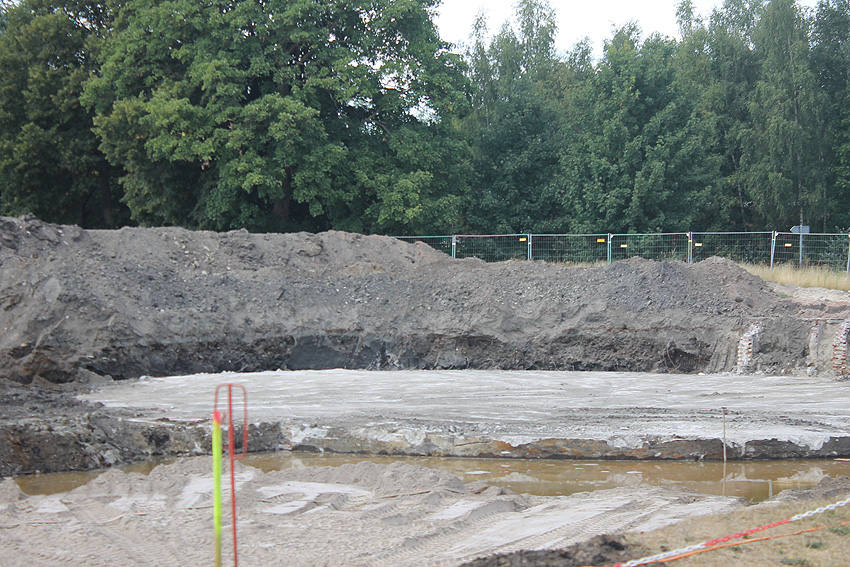 Dies ist der aktuelle Stand auf dem Gelände. Historische Mauerwerksstrukturen (in Verbindung mit dem ehemaligen Öltank) treten ans Tageslicht. Alte Ölleitungen wurden geborgen.