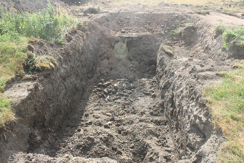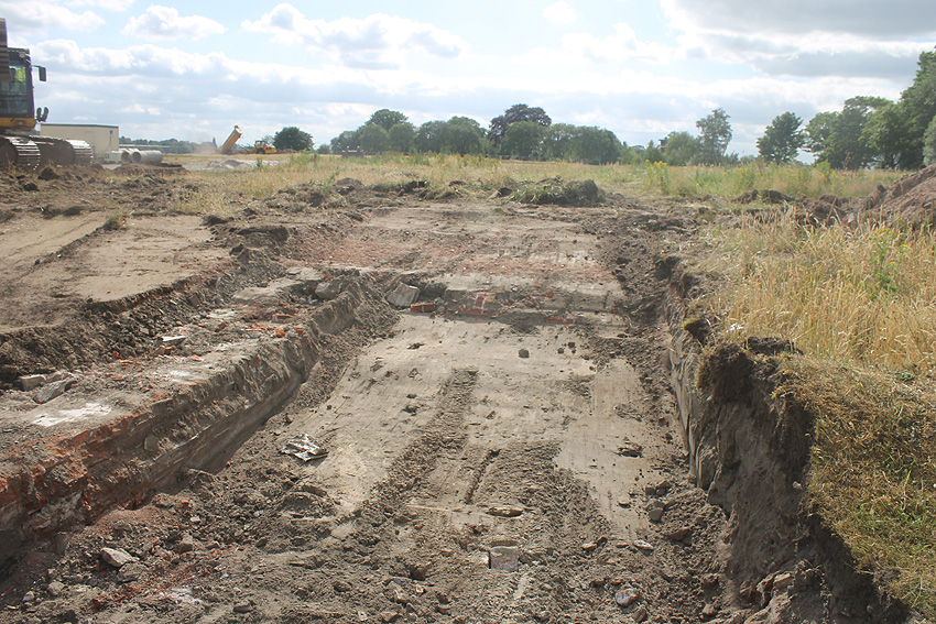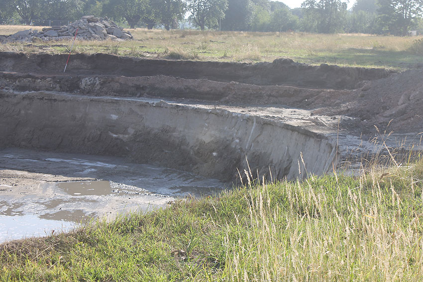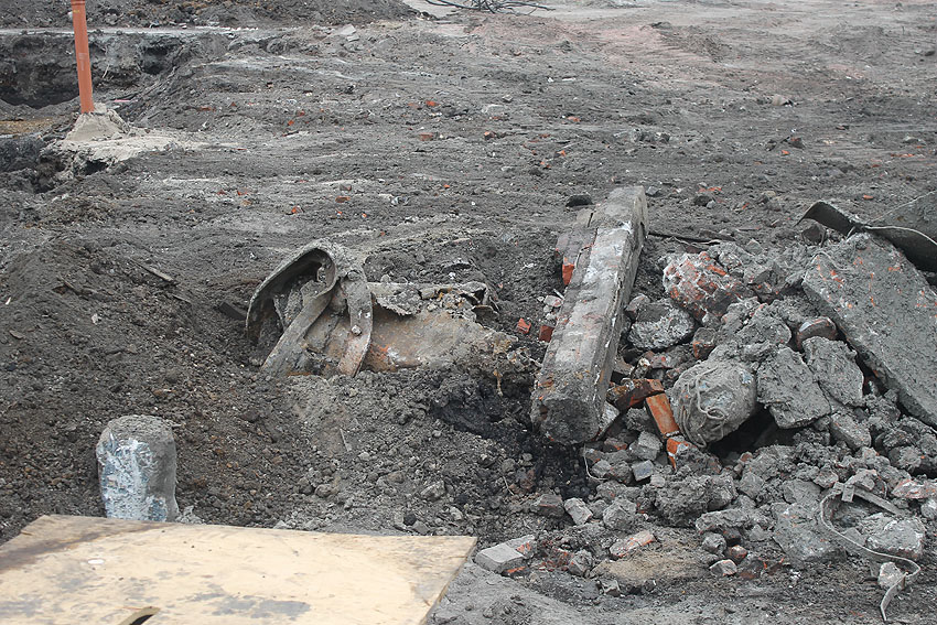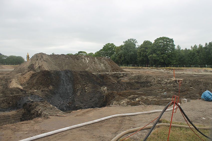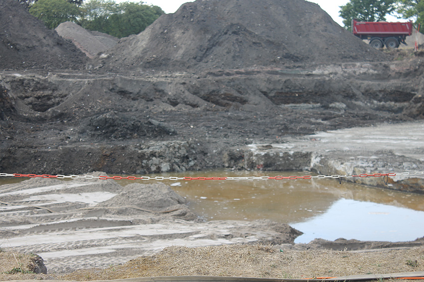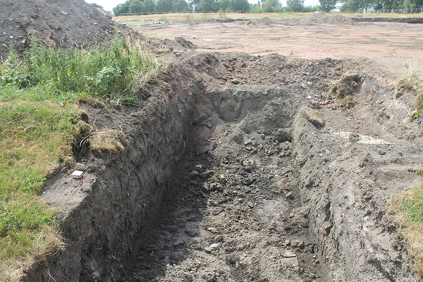 Dies ist der aktuelle Stand auf dem Gelände. Historische Mauerwerksstrukturen (in Verbindung mit dem ehemaligen Öltank) treten ans Tageslicht. Alte Ölleitungen wurden geborgen.