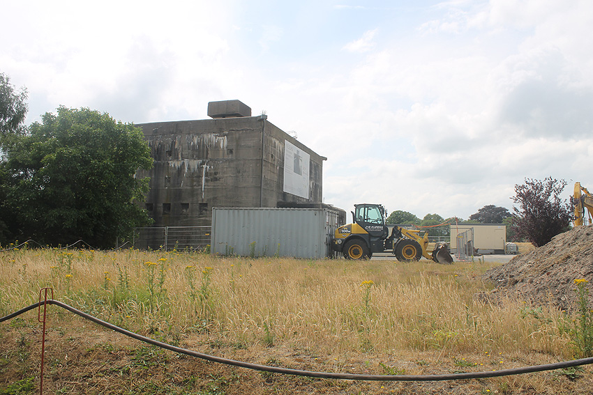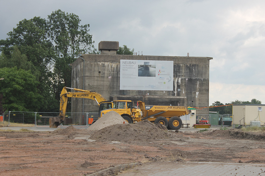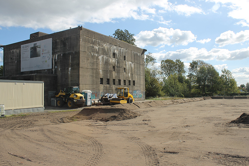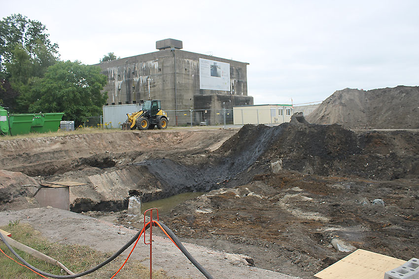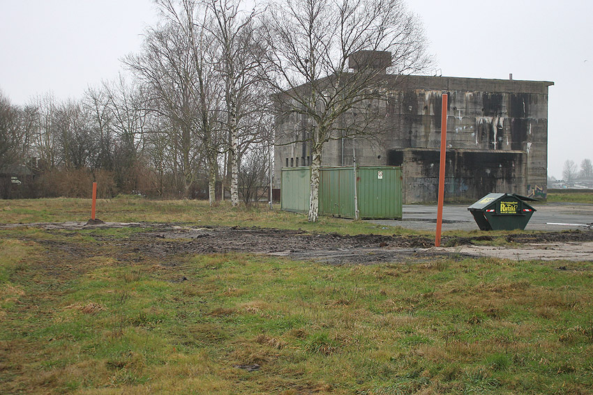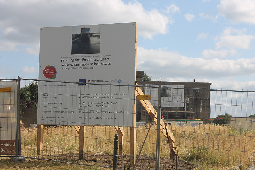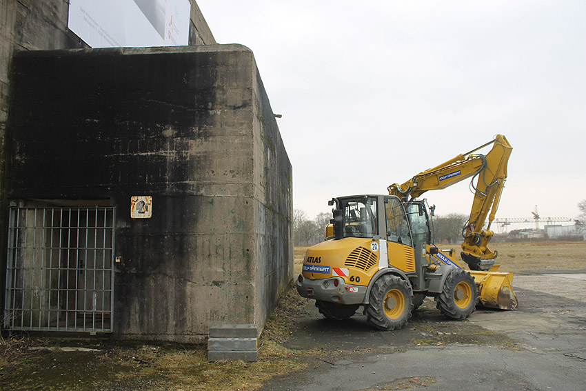 Das Gelände rund um den Bunker wurde nun abgezäunt. Die Arbeiten zur Dekontaminierung des umliegenden Bodens sind angelaufen. Erdbodenbereiche wurden bereits umgeschichtet. Auch der Bereich des noch immer vorhandenen Fundamentes des anliegenden ehemaligen Öltanks "Grodenfähre Nord" wurde freigeräumt. Das Ring-Fundament ist nun klar ersichtlich.