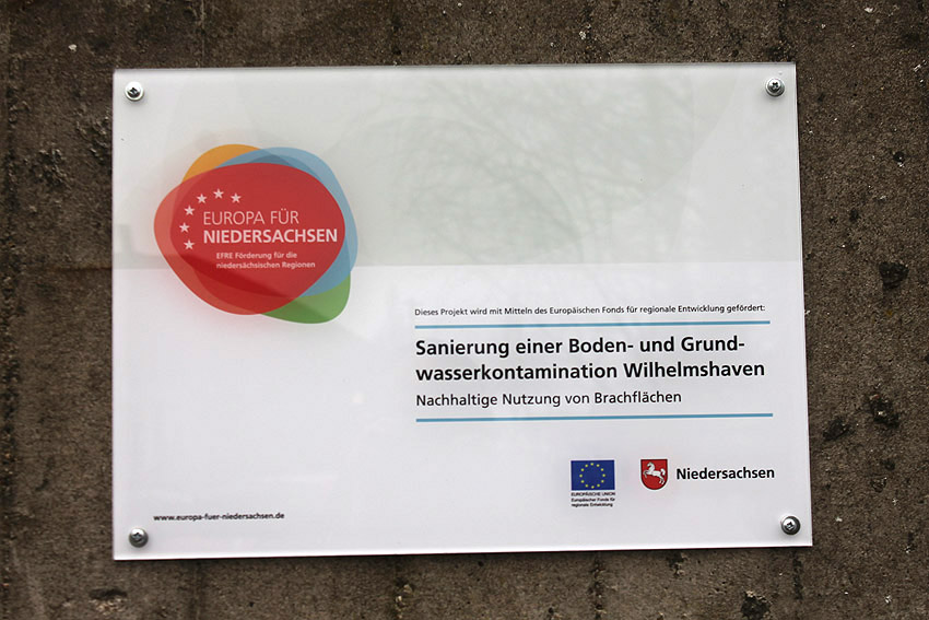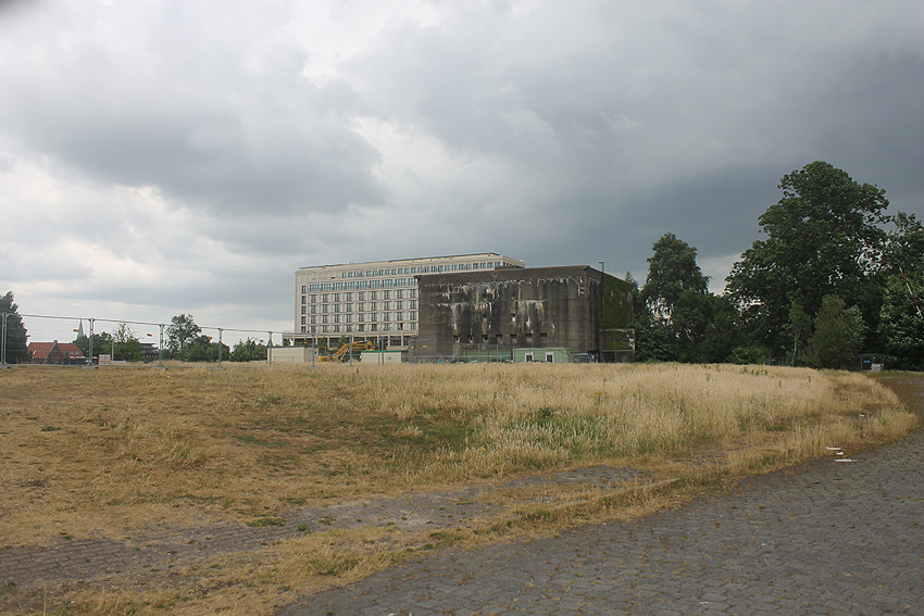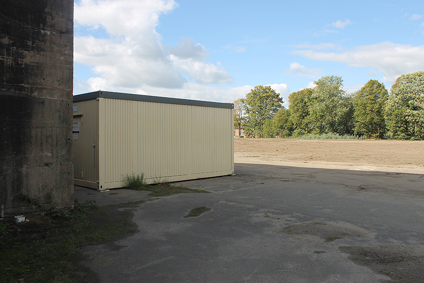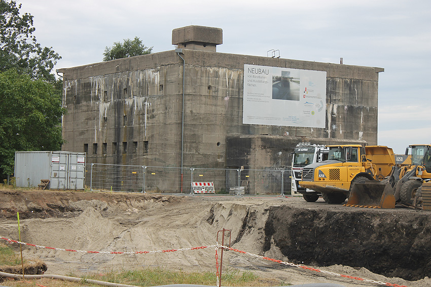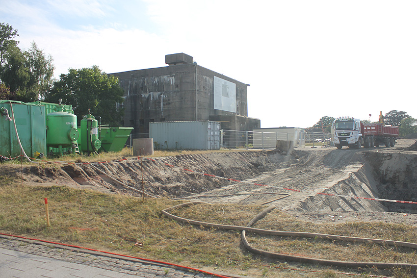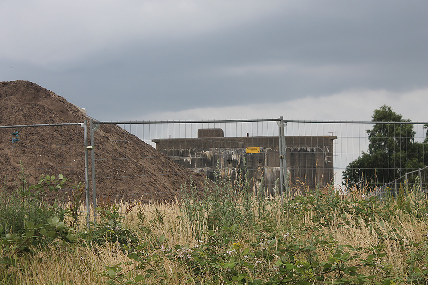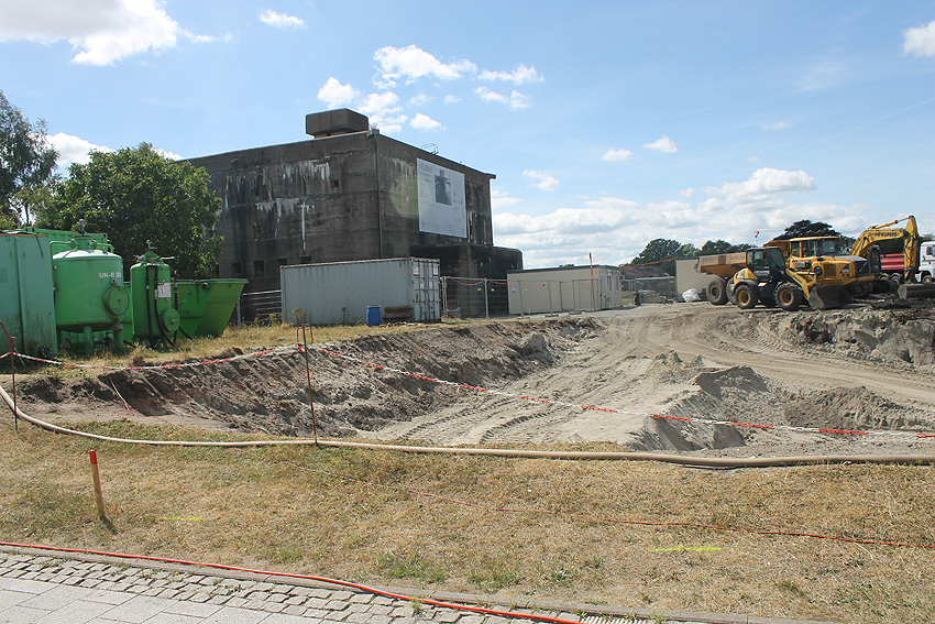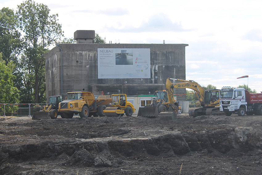 Das Gelände rund um den Bunker wurde nun abgezäunt. Die Arbeiten zur Dekontaminierung des umliegenden Bodens sind angelaufen. Erdbodenbereiche wurden bereits umgeschichtet. Auch der Bereich des noch immer vorhandenen Fundamentes des anliegenden ehemaligen Öltanks "Grodenfähre Nord" wurde freigeräumt. Das Ring-Fundament ist nun klar ersichtlich.