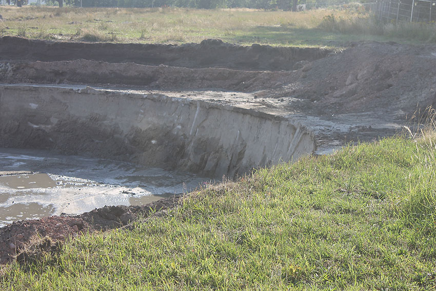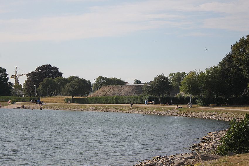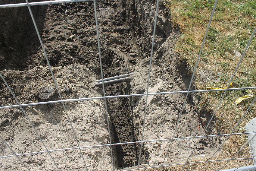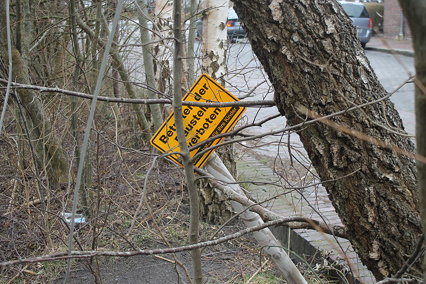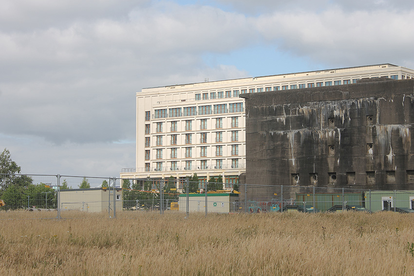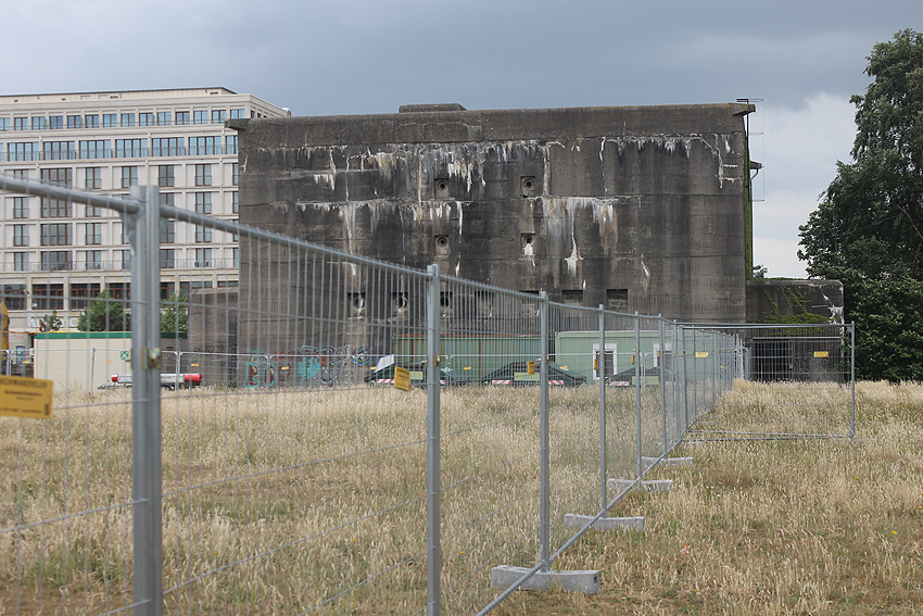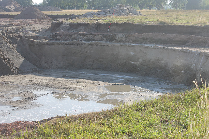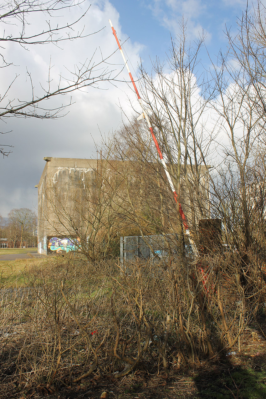 Mittlerweile wurde auch der Gehweg an der Jadeallee abgezäunt. Weitere Mengen Erdreich wurden nordöstlich des Bunkers ausgehoben. Der Tankfundamentbereich ist voll Wasser gelaufen. Es wird sich hierbei um Grund- und Regenwasser handeln.
