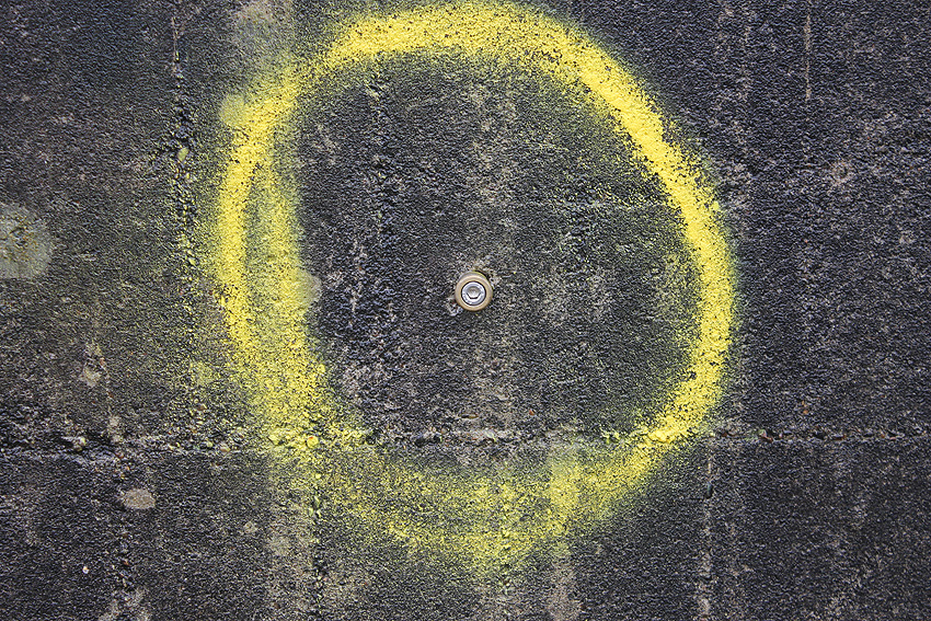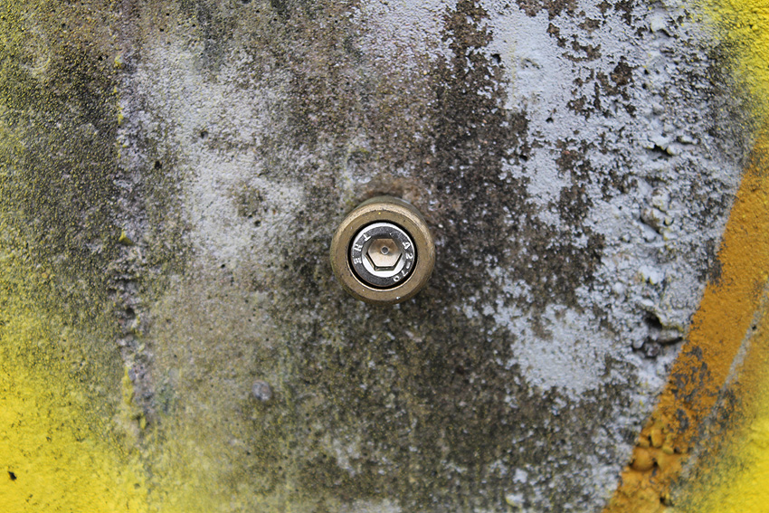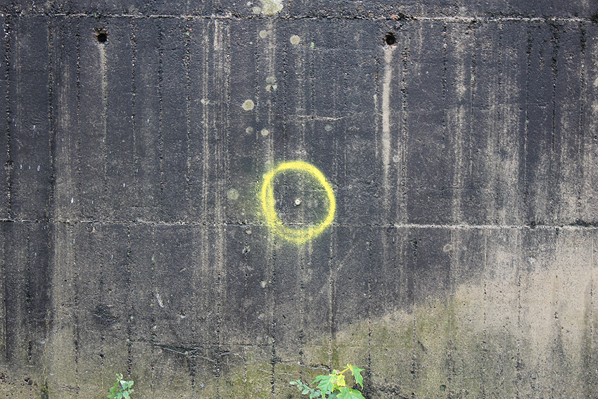 Mittlerweile (noch zu Zeiten der Geländesanierung) wurde der Bunker innen und außen vermessen. Messpunkte sind an allen vier Wänden angebracht worden: