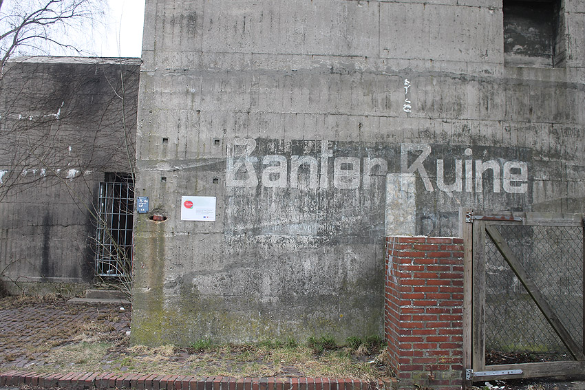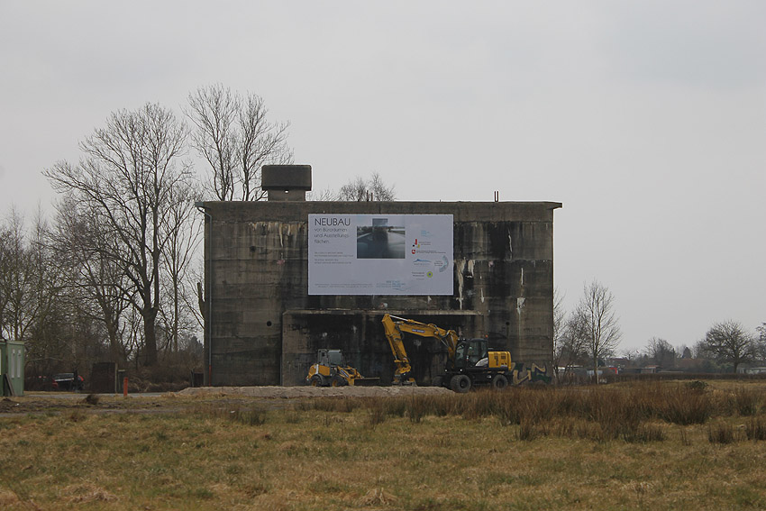 Heute erschien in der Wilhelmshavener Zeitung ein Artikel zum gestrigen Ortstermin am T 750 Banter Ruine. Der Verein zum Erhalt der Bunker am Banter See möchte u.a., dass der Lüftungsturm erhalten bleibt. - Entweder am Originalplatz auf dem Dach, oder im intakten Zustand auf einen Standortplatz neben den Bunker verbracht, bzw. an einen anderen nahen Ort als Relikt versetzt. Die Wasserspeier werden nach Aussage von GGS erhalten bleiben. Größere Entfestigungsschnitte wird es nicht geben. Auch das Innere soll nach Vereinswunsch in ein oder zwei Räumen durch eben diesen für eine Dauerausstellung genutzt werden. Der Verein wird sich nach Kräften für die Verwirklichung seiner Vorstellungen einsetzen, soll nun in die Planungen mit einbezogen werden und begleitet die Zukunft des Bunkers. "Bunker soll als Markenzeichen erhalten bleiben".